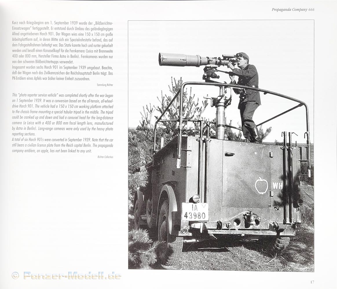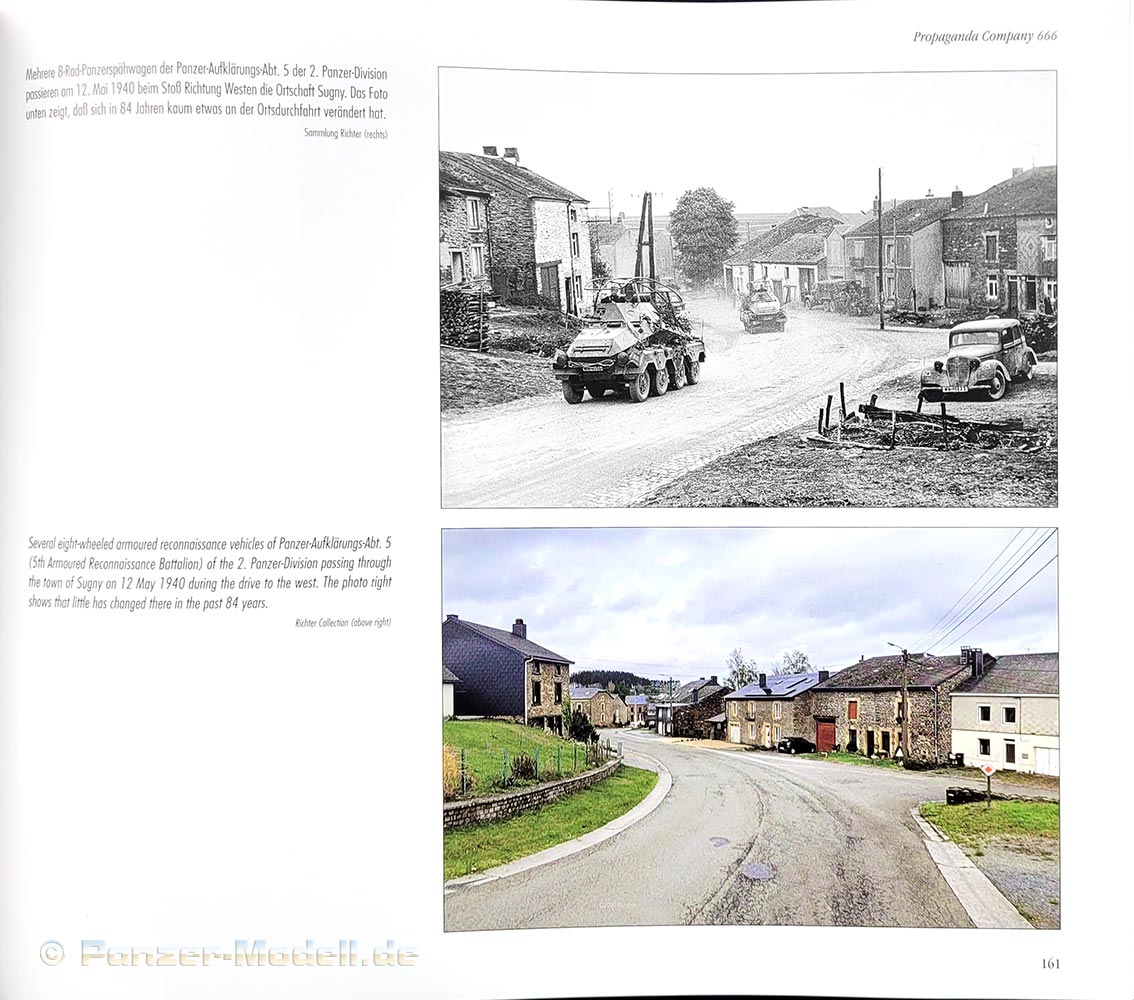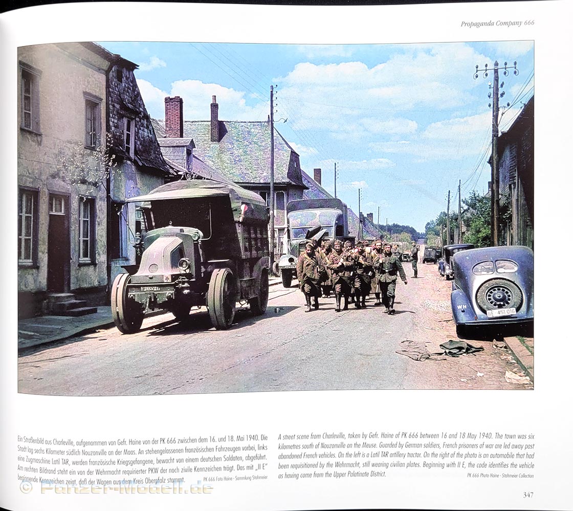 Die Fotografien sind auf hochwertigemP apier abgebildet, was nicht nur die Bildqualität betont, sondern auch die visuelle Wirkung verstärkt. Zusätzlich zum Bildmaterial enthält das Buch etwa 38 farbige Karten, die die geographischen Gegebenheiten und die Bewegungen der Truppen während des Westfeldzugs dokumentieren. Diese Karten sind eine wertvolle Hilfe, um die verschiedenen Einsätze und die geografischen Herausforderungen besser nachzuvollziehen. Das Buch gliedert sich in zwei Hauptteile, die zusammen einen umfassenden Blick auf die Geschichte der Propaganda-Kompanie 666 und ihren Einsatz im Westfeldzug bieten. Der erste Hauptteil des Buches beschäftigt sich mit der Entstehung und Struktur der Propaganda-Kompanie 666. Es wird detailliert erklärt, wie diese Kompanie innerhalb des nationalsozialistischen Regimes ins Leben gerufen wurde und welche Aufgaben sie übernahm. Die Propaganda-Kompanie 666 war eng mit dem Ministerium für Volksaufklärung und Propaganda unter Joseph Goebbels verbunden. Sie begleitete die Wehrmachtseinheiten an die Front und sollte die Kriegsberichterstattung nach den Vorgaben der nationalsozialistischen Ideologie gestalten. Der Autor geht auf die organisatorischen Aspekte ein, beleuchtet die Rolle der Kriegsberichter und beschreibt die politische Dimension dieser Einheit. Ein besonders interessantes Detail des Buches ist, wie sich die Zusammenarbeit zwischen dem Oberkommando der Wehrmacht und dem Propagandaministerium gestaltete und wie die Kriegsberichter gezielt eingesetzt wurden, um die öffentliche Meinung zu beeinflussen. Der zweite Teil des Buches nimmt etwa 80% des gesamten Umfangs ein und behandelt die Einsätze der Propaganda-Kompanie 666 im Westfeldzug 1940 vom 10.Mai bis 21.Juni 1940. Hier wird die Rolle der Kriegsberichter während des Vorstoßes durch die Ardennen, der Kämpfe um Sedan und den Maas-Übergang bis hin zu den Schlachten um Boulogne und Calais detailliert beschrieben. Die Berichterstatter der Kompanie begleiteten Infanterie-Divisionen des III. Armeekorps und des Panzerkorps von Guderian und dokumentierten aus nächster Nähe die militärischen Ereignisse. Der Leser wird durch die verschiedenen Schlachten und militärischen Operationen geführt, wobei die persönliche Perspektive der Kriegsberichter, die oft direkt an den Frontlinien arbeiteten, eine besondere Bedeutung hat. Es wird nicht nur die militärische Strategie behandelt, sondern auch der Alltag der Soldaten und die Auswirkungen der Propaganda auf die Moral und das Bild des Krieges in der Heimat. Ein weiteres spannendes Kapitel befasst sich mit den originalen Dokumenten und Berichten der Kriegsberichter, die aus erster Hand berichten und die Perspektive dieser Propagandaeinheit widerspiegeln. Diese Berichte geben dem Leser einen direkten Einblick in die Denkweise und die Arbeitsweise der Kriegsberichter, die oft inmitten des Geschehens agierten. „PK 666 – Die Propaganda-Kompanie 666“ ist das erste umfassende Werk, das sich intensiv mit dieser speziellen Einheit befasst. Axel Urbanke hat umfangreiche Recherchen betrieben und aus verschiedenen Quellen, darunter private Sammlungen und unpublizierte Berichte, das Bild einer Kompanie gezeichnet, die in der Geschichte des Zweiten Weltkriegs bislang wenig Beachtung fand. Das Buch stellt eine wertvolle Ergänzung zu bestehenden Arbeiten über den Westfeldzug und die Rolle der Propaganda im Krieg dar. Das Buch ist wie gewohnt komplett zweisprachig deutsch und englisch und damit international verständlich Insgesamt ein gut recherchiertes Buch, das sowohl für Militärhistoriker als auch Modellbauer von großem Interesse ist. Die Kombination aus umfassender Bilddokumentation, detaillierten Berichten und fundierter Recherche macht es zu einem wertvollen Nachschlagewerk für alle, die sich mit der Propagandaeinheit der Wehrmacht und ihrer Rolle im Westfeldzug beschäftigen möchten. Das beeindruckende Format und die hohe Qualität des Drucks machen das Buch zu einem wahren Sammlerstück. Wer sich für die Verbindung von Militärgeschichte und Propaganda interessiert, wird in diesem Werk auf eine Vielzahl von neuen und aufschlussreichen Informationen stoßen. "PK 666 - Die Propaganda-Kompanie 666 - Einblicke in die Geschichte einer Propaganda-Einheit Band I - Aufstellung und Westfeldzug 1940