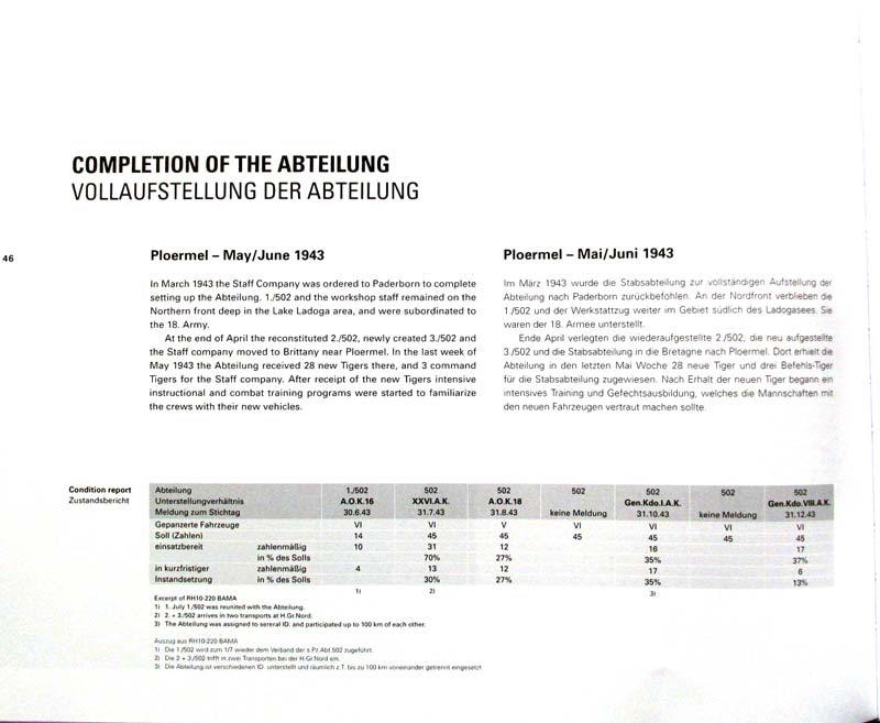 Auf den vorliegenden 128 Seiten im Querformat hat Autor Volker Ruff wieder hervorragendes Fotomaterial zu den Tigern dieser Abteilung zusammengetragen. Rund 150 Fotos, von denen die meisten bislang unveröffentlicht sind, werden hier in großen Fotos in guter Qualität wiedergegeben. Zu den Fotos gibt es jeweils informative Bildunteschriften, die über das Gezeigte aufklären. Alle Texte im Buch sind komplett zweisprachig deutsch und englisch. Die Texte an sich sind ansonsten gut verständlich und informativ, denn oft wird auf Besonderheiten auf den Fotos hingewiesen, die einem oberflächlichen Betrachter womöglich sonst entgehen. Die Fotos und deren Auswahl überzeugt auf ganzer Linie. Tiger wohin das Auge blickt. In de Hauptsache natürlich Tiger I ... Nur ganz zum Schluss gibt es ein paar wenige Fotos mit der Neuausstattung mit Tiger II. Man sieht die Tiger in allen Lebenslagen und allen Schauplätzen an denen die 502 eingesetzt war und die spezifischen jeweiligen Tarnbemalungen und Markierungen. Eine Fundgrube für Modellbauer. Dazu Fotos der Soldaten, Versorgungsfahrzeuge und Unterstützungsfahrzeuge, wie z.B. die Panzer III, die das Bild abrunden. Zeitlich beginnt das Buch mit de Aufstellung und Ausbildung der 502 im Mai 1942 und der Auslieferung der ersten 4 Tiger im August 1942 in Mga und Verlegungen an der Ostpront, wie z.B. an die Neva und weiter zur Schlacht am Ladoga-See im Januar 1943. Gerade diese Aufnahmen der frühen Tiger ohne die Seitenschürzen und andere spezifische Features, sind sehr sehenswert. Bis Ende 1943 bleibt die Einheit in Tossno als Hauptstützpunkt, von wo es auch tolle Aufnahmen aus dem Werkstattbereich gibt. Eine schöne Bilderserie gibt es dann zur Nachlieferung zur Vollaufstellung der Abteilung in Ploermel. Diese Tiger zeigen schon deutliche Änderungen in der Optik Eindrucksvolle Fotos gibt es dann zur 3.Schlacht am Ladoga See im Sommer 1943 - sehr gute und beeindruckende und neue Aufnahmen in toller Qualität aus Bereitstellungsräumen, Marsch und Kampfm sowie folgend Bilder von Instandsetzung und Abschleppvorgängen mit bis zu 5 FAMOs. Insgesamt ein exzellentes Fotobuch mit zusätzlich informativem Text, ideal für Modell- und Dioramenbauer, sowie historisch Interessierte. Das Ganze zu einem angenehmen Preis von unter 30 Euro, z.B. direkt vom Verlag.