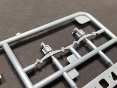 Die Bauanleitung führt Schritt für Schritt in englischer, chinesischer, japanischer teilweise russischer Sprache (Teile der Flak) mit 3-D Zeichnungen durch die 15 Baustufen. Den Anfang macht eine Bauteilübersicht danach folgen die Baustufen 1 bis 9 für den Plattformwagen und die Schienen. Anschließend folgen die Baustufen 10 bis 15 für die Flak nebst Bedienungsmannschaft. Beim vorliegenden Bausatz entfällt die Baustufe 10 durch die nicht beiliegenden Ätzteile für das Flak-Schild. Den Abschluss bildet eine farbige Darstellung der zwei Markierungsvarianten. Die Farbangaben am Ende der Bauanleitung nennen neben den Originalfarben (FS/RAL Standard), Angaben zu den Herstellern VIC, MIG Ammo, Tamiya, Mr. Hobby und Vallejo. Was in der Bauanleitung leider fehlt ist die Darstellung der Anbringung der Kreuzlafette auf dem Plattformwagen. Hier muss selbst die „Mitte“ gefunden werden. Eine Markierung auf dem Ätzteildeck des Plattformwagens wäre hier sicherlich hilfreich gewesen. Die in grauem Kunststoff gespritzten Teile von T-Model für den Plattformwagen und Zvesda für die Flak sind durchweg fein detailliert. Alle Teile haben kleine gut gewählte Angüsse und keine nennenswerten Auswerfermarken auf später sichtbaren Stellen. Sämtliche Bauteile weisen keinen Versatz auf, teilweise sind nur leichte Grate vorhanden, die den positiven Gesamteindruck aber nicht stören und leicht versäubert werden können. Der Aufbau des Plattformwagens weiß durch die Kombination aus Spritzgussteilen für die stabilen Bereiche und Ätzteilen für die filigraneren Teile durchweg zu gefallen. Hier sei das Deck des Plattformwagens oder die Aufhängung der Achsen aus einem Ätzteil genannt. Dadurch wird ein hoher Detailgrad des fertigen Modells erreicht, der dem ansonsten im Original doch sehr „einfachen“ Plattformwagen detailreich dastehen lässt. Das Kanonenrohr der Flak ist als Kunststoffteil einteilig ausgeführt und muss somit nicht aufwendig verspachtelt werden. Lediglich die Rohröffnung fehlt und muss selbst durch Aufbohren hergestellt werden. Durch die beiliegenden Schienen nebst dazugehörigen Schwellen (mit leichter Holzmaserung) lässt sich dieser Bausatz reizvoll in einem Diorama in Szene setzen. Mein Fazit: T-Model bringt in dieser Zusammenstellung des eigenen Plattformwagens mit dem Flak-Bausatz von Zvesda eine reizvolle Kombination heraus , die sicher das ein oder andere Diorama verschönern wird. Der Preis von derzeit 32,50 € geht für den vorliegenden Bausatz, der ja eigentlich aus zwei Bausätzen besteht i.O. Man bekommt für diesen Preis ja schließlich den eigentlichen Plattformwagen, die notwendigen Schienen, die Flak und 4 passende Figuren und das ganze abgerundet mit sinnvollen Ätzteilen für den Plattformwagen. Die Detaillierung der Bauteile und der grundsätzliche Aufbau des Bausatzes lassen viel Bastelspaß erwarten. Der Umfang der Ätzteile ist zwar beträchtlich aber trotzdem auf das nötigste begrenzt. Da viele auch teils sehr kleine Bauteile (Ätzeile) zu verarbeiten sind, ist der Bausatz eher für den fortgeschrittenen Modellbauer zu empfehlen.