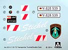 Zur Farbgebung und Markierung liegt neben dem fein gedrucken Decalbogen ein farbiger, doppelseitig bedruckter A5 Bogen bei, der die Markierung eines Bundeswehr Fahrzeugs in Dreifarb Tarnung, eines libaneischen Fahrzeugs in oliv und eines zivilen Fahrzeugs zeigt. Die Farbangaben sind für Ammo of Mig Farben.