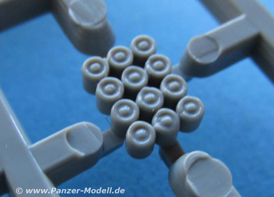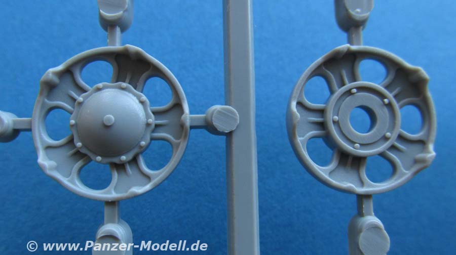Der Guss ist ganz ausgezeichnet mit feinen, sauberen Details an den Teilen. Dazu weder Versatz, noch Fischhäute oder Grat, keine Sinkstellen, dafür aber scharfe Details und sinnvoll aufgeteilte Bauteile. Was ein wenig wundert und auffällt, ist das Erscheinungsbild der Spritzlinge, die statt runder Gießastrahmen flache, platte Gießastrahmen haben. Völlig unerheblich für die Teile, aber irgendwie seltsam anzusehen.