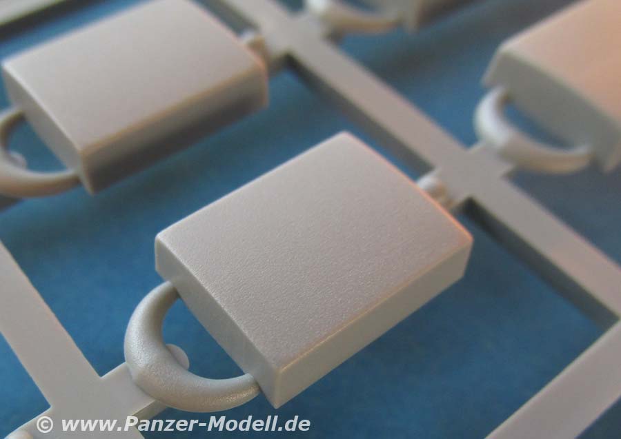 Der Guss der Teile ist absolut fehlerfrei, sauber und detailliert, wobei bei das Originalfahrzeug hauptsächlich klotzig ist und nur relativ wenige Details aufweist. Diese allerdings sind allesamt schön von Takom aufgegriffen und umgesetzt.
