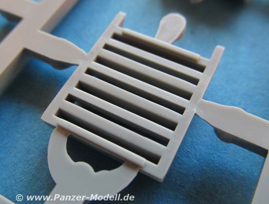 Wenigstens sind die seitllichen Einstiegstüren einzeln beigelegt, sodass man hier zumindest etwas offen darstellen könnte, wenn man denn wollte. Die Oberflächendetails an den Rumpfteilen, gefallen mir sehr gut mit den Scharnieren, Nieten und versenkten Schreubenköpfen.