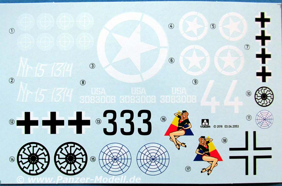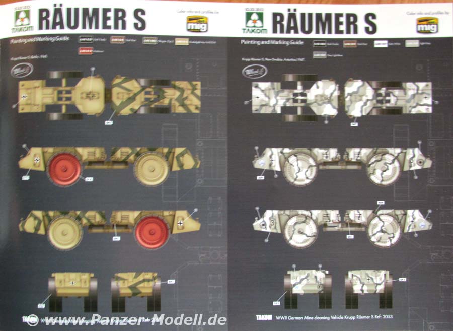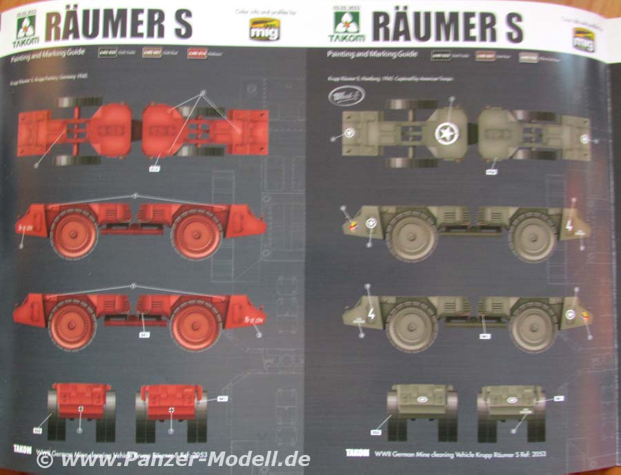 Die Vorlagen zur Bemalung und Markierung für 4 Versionen sind als Farbdrucke am Ende der Bauanleitung auf 2 Seiten angehängt: