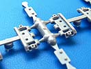 Der Bausatz: Aus seiner hervorragenden AMX-13 Serie präsentiert uns Takom die Einzelgliederketten (in diesem Fall mit Gummipolstern) als Zubehörsatz für die Konkurenzbausätze Tamiya 35349 und Heller 81122 und 81151, um die dort enthaltenen Gummiketten zu ersetzen. Selbstverständlich kann man auch die Takom Bausätze, die vom Hersteller nur mit Stahlketten ausgerüstet sind, mit der Polsterkette umrüsten.In der 120 x 85 x 30 mm kleinen Schachtel finden wir 10 hellgraue, identische Spritzlinge, die einmal "gefaltet" wurden, um in den Karton zu passen. Da die Angüsse an den Gliedern sehr dünn sind, kann es sein, dass die Spritzlinge bereits in mehrere Teile zerfallen sind, was aber die Qualität keinen Abbruch tut. Zusätzlich enthält die Schachtel ein Zettelchen für den Zusammenbau.Jeder Spritzling enthält 18 Kettenglieder und 18 Gummipolster. Das Original benötigte 85 Glieder pro Laufwerksseite. Ich gehe davon aus, dass dies am Modell genauso sein wird, womit man am Ende also 10 Glieder als Reserve behält.Die Teile sind sauber gespritzt, ohne Versatz, ohne Fischhäute, ohne Grat. Form und Struktur sind sehr gut wiedergegeben. Stege, Bohrungen, Durchbrüche, Führungszähne und die Schraubenköpfe der Polster erscheinen in einem guten Bild. Führungszähne und Kettenpolsterschraubenköpfe sind links und rechts versetzt wie beim Original. Ebensogut sind die Anschrägungen der Polster wiedergegeben.Pro Glied gibt es 3 Angüsse, pro Polster 2, aber das sind dann auch die einzigen Versäuberungsarbeiten, die man durchführen muss. Positionierungsstifte und -löcher für die Kettenpolster sind versetzt ausgeführt, so dass man die Polster nur in einer Position (der richtigen) aufkleben kann. Auch die Glieder werden miteinander verklebt und bleiben daher nicht beweglich.Ein winziges Zettelchen (Bauanleitung wäre übertrieben) zeigt, wie Polster und Glieder und die Glieder untereinander verklebt werden sollen. Die Farbgebung entnimmt man dem Schachtelbild (oder recherchiert selbst).Die Kette stellt eine echte und dabei preisgünstige Möglichkeit dar, andere AMX-13 Modelle aufzuwerten.