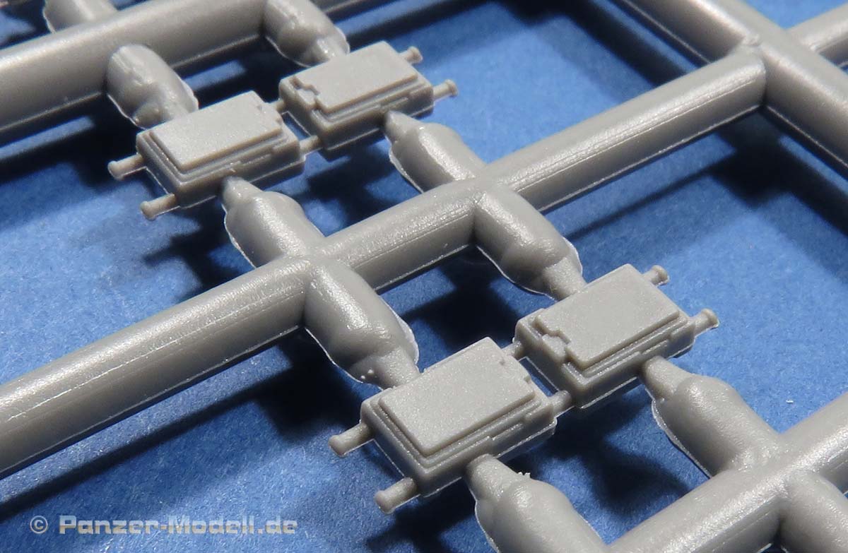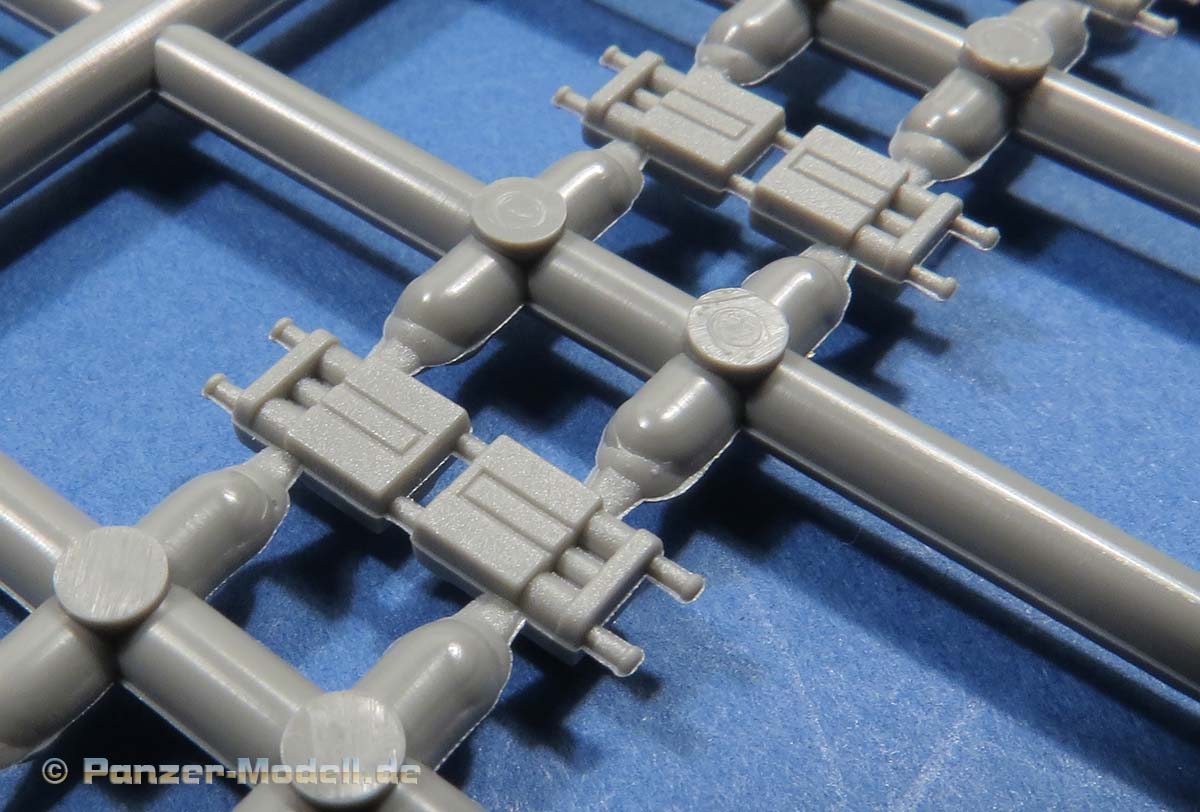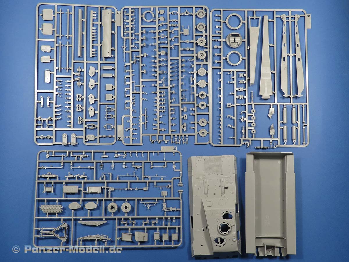 Einige der Spritzlinge, wie etwa für die Kette und für das Laufwerk sind bereits von vorigen Leopard 1 Bausätzen von Takom bekannt. Die restlichen sind komplett neu für den Bergepanzer gemacht.