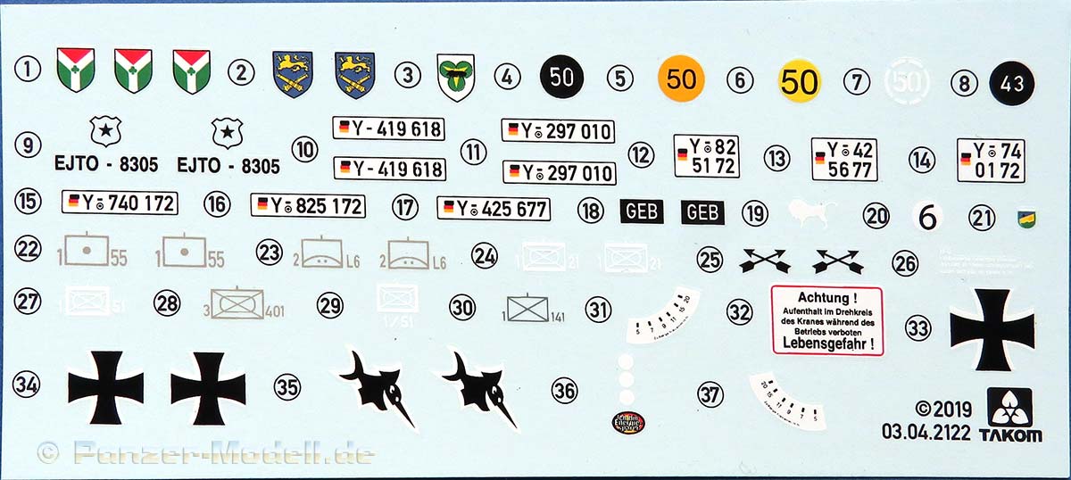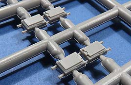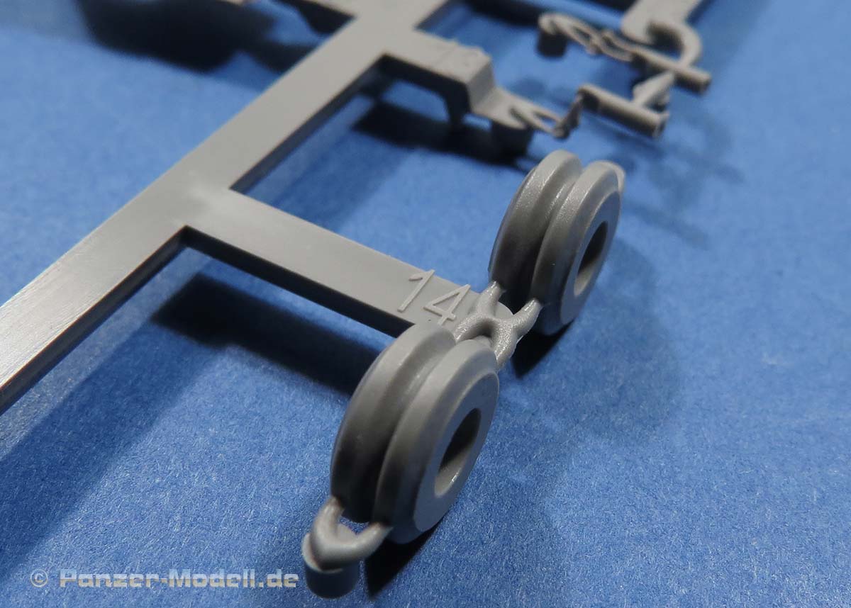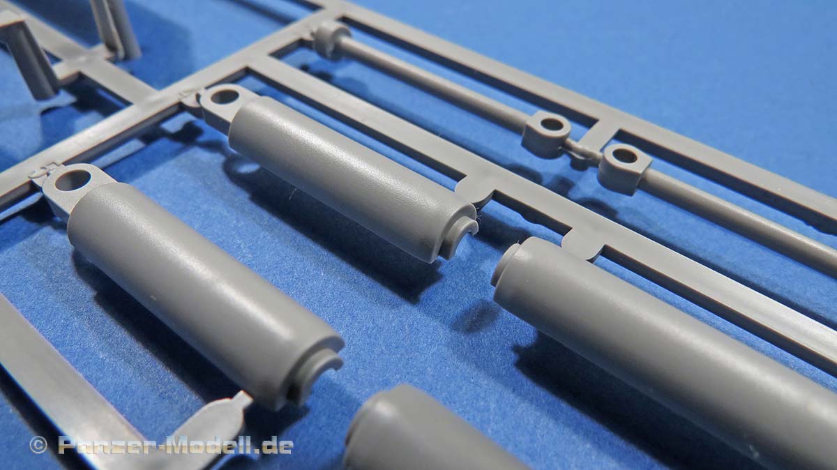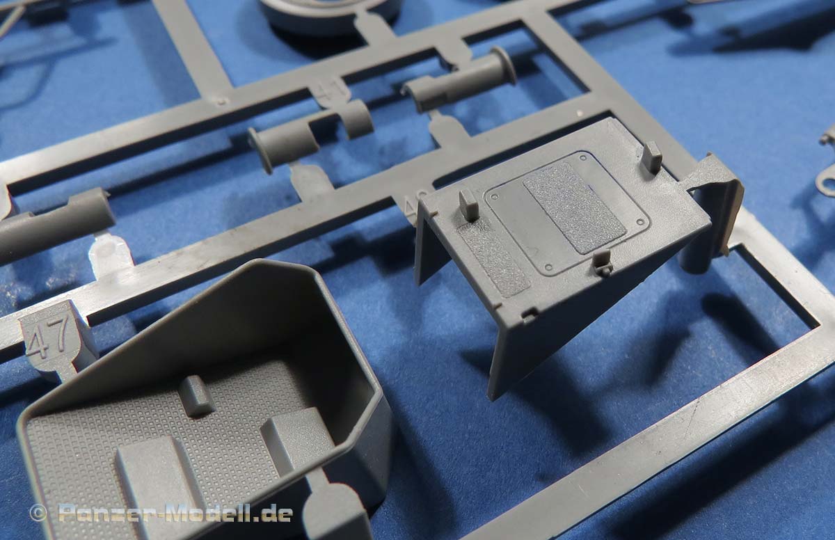 Einige der Spritzlinge, wie etwa für die Kette und für das Laufwerk sind bereits von vorigen Leopard 1 Bausätzen von Takom bekannt. Die restlichen sind komplett neu für den Bergepanzer gemacht.