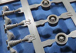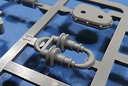 Die Gummiendverbinder sind für den Werkstoff recht schön detailliert aber teilweise ein bisschen mit Fusselkram-Ausfluss. Der ist etwas schwer zu versäubern, da das bei so weichem Gummi immer etwas schwierig ist.