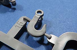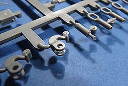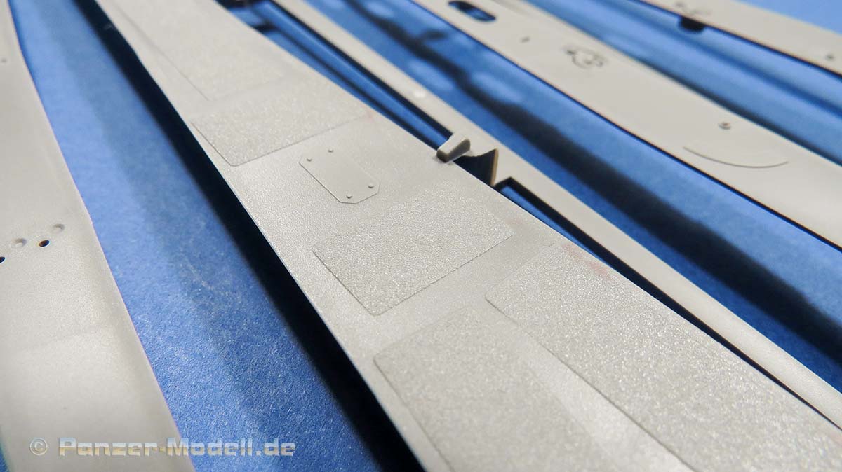 Natürlich sind sämtliche Werkzeuge, die zusätzlichen Schäkel, Eisgreifer wie am Original auch hier vorhanden und werden auf die Wannenseiten geklebt. Die Halterungen sind bereits entsprechend mit angegossen.