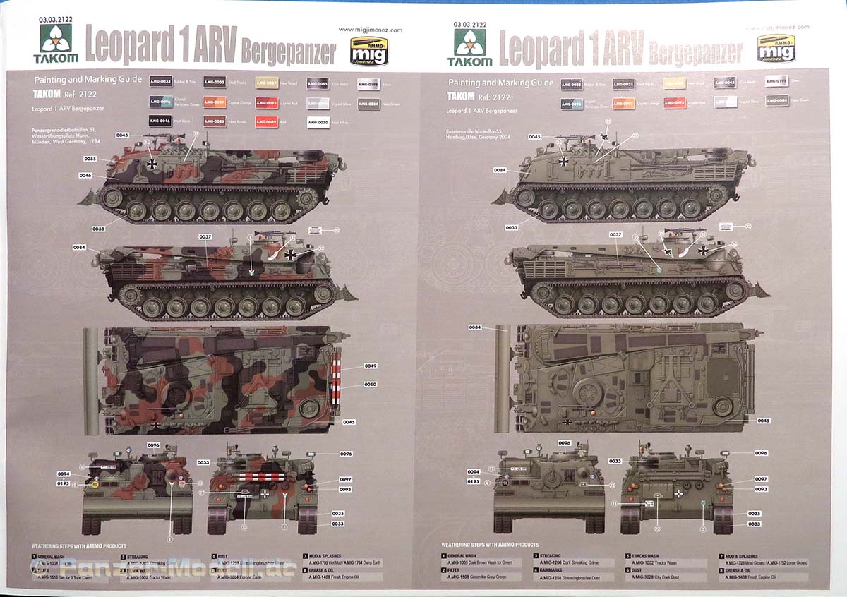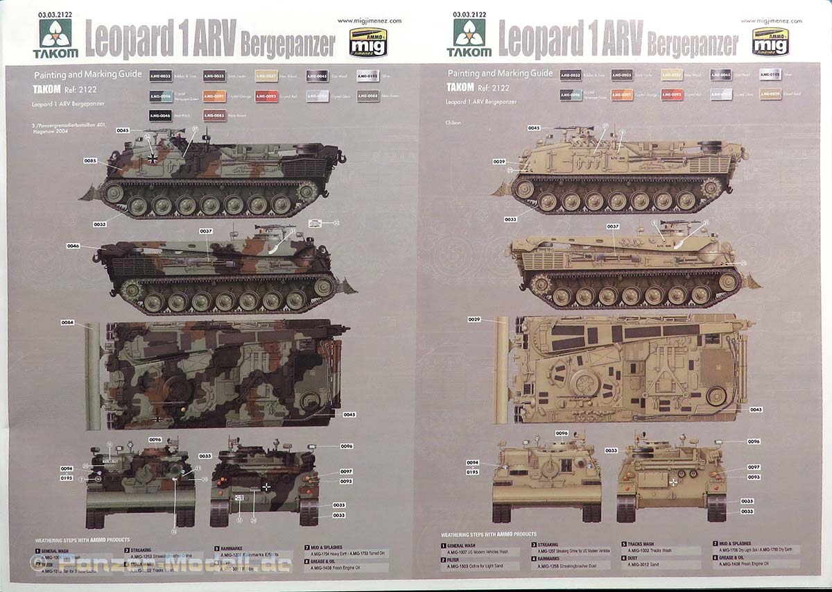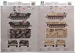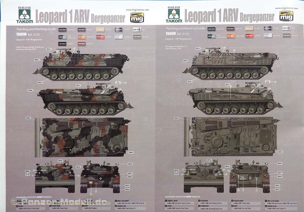 Im Anschluss an die Baustufen finden wir sechs gedruckte Farbprofile zur Bemalung und Markierung des Bergepanzers.