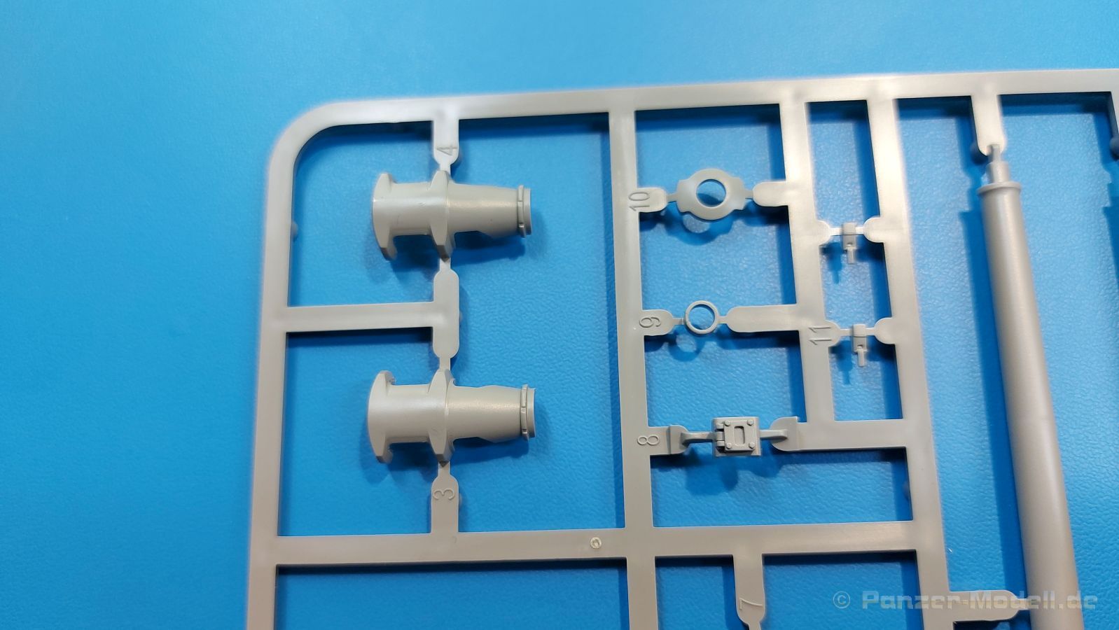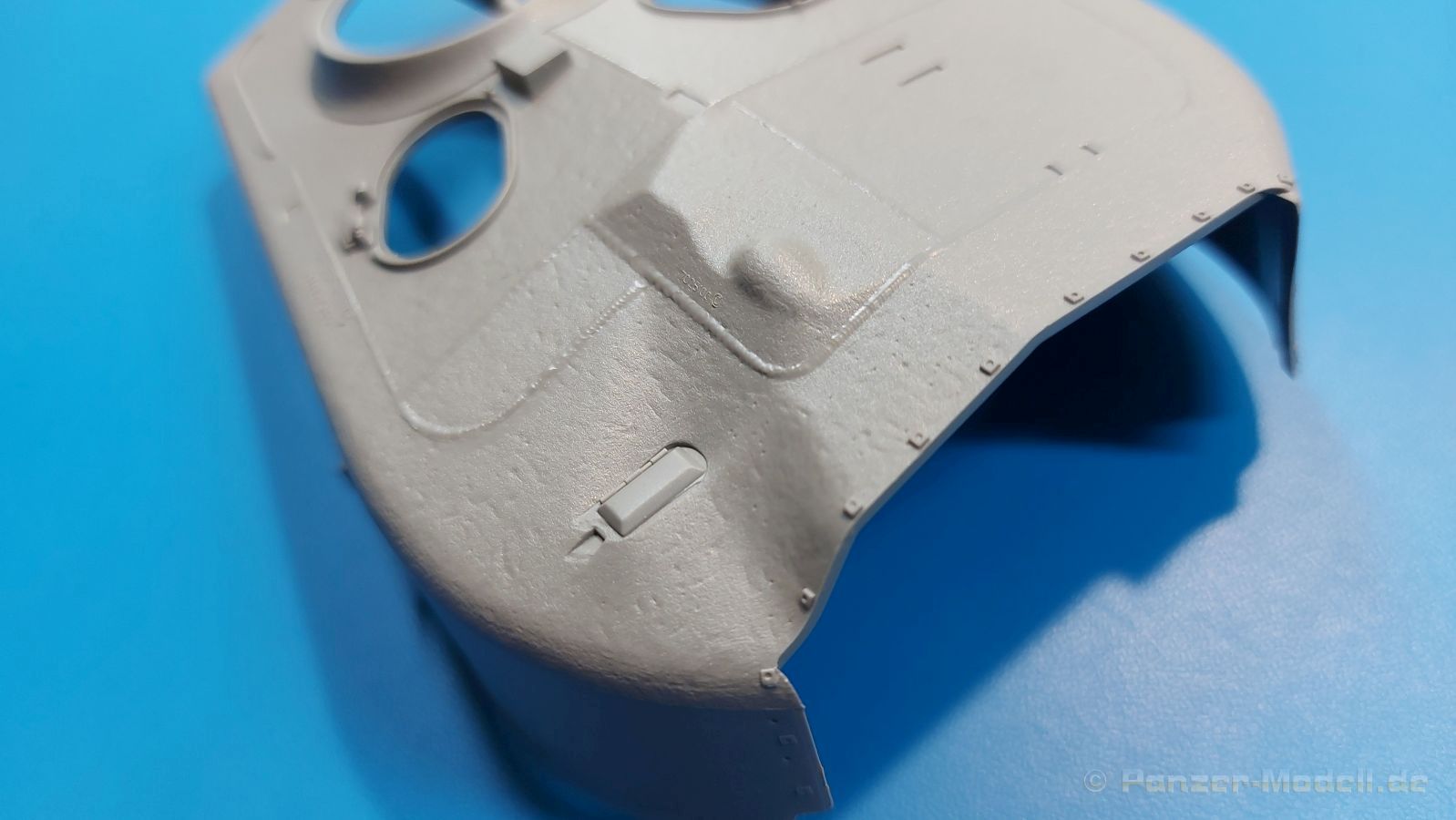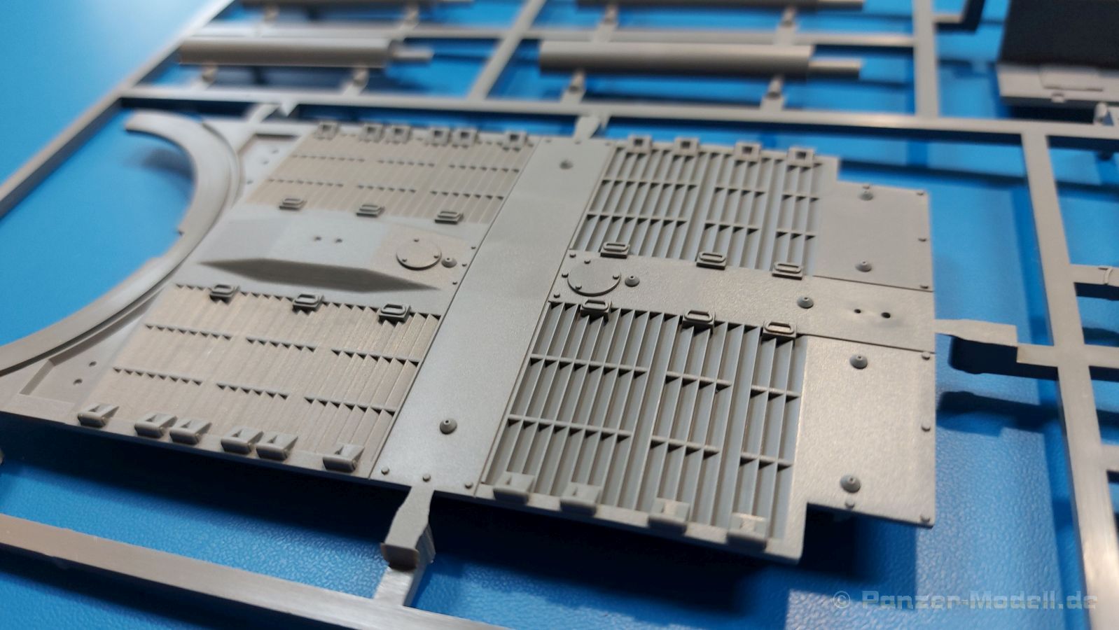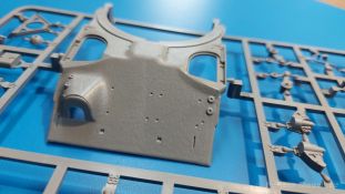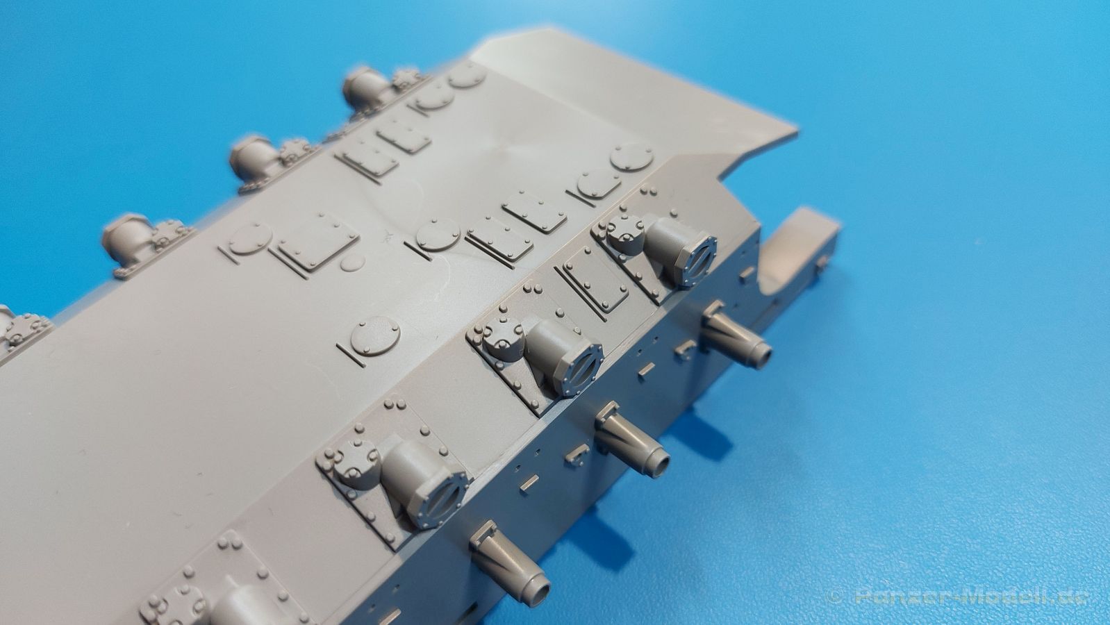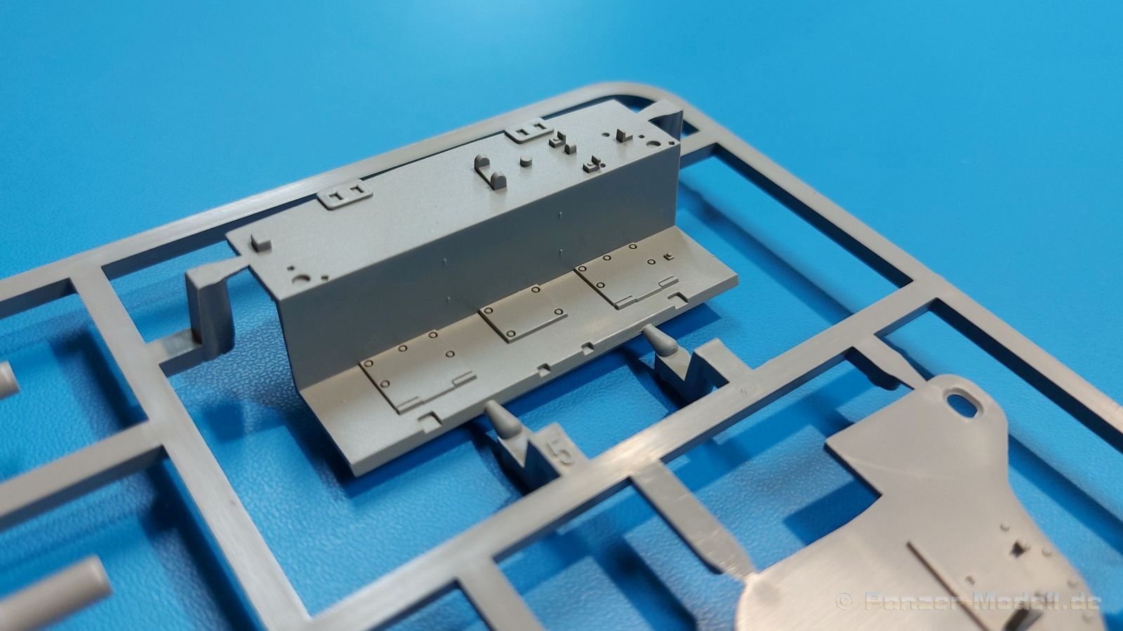 Der Bausatz: 2017 kam TAKOM mit seinen ersten T29/30/34 Modellen heraus. Nun folgt der Vorläufer dieser, also der eigentliche T29. Wir finden im 380 x 250 x 85 mm großen Karton 8 hellgraue Spritzlinge, 1 Klarsichtspritzling, die Unterwanne, Turmoberteil, 1 Draht und 1 Decalbogen. Dazu kommt eine 18-seitige Bauanleitung im A4 Querformat. Die Unterwanne ist einteilig und weist bereits viele, feine, saubere Details wie Wartungsdeckel und die Aufnahmen der Laufwerkskomponenten auf. Die Metallstruktur ist gut wiedergegeben. Die runden Notausstiegsluken der Wannenbesatzung sind separat anzubringen. Die Laufwerkskomponenten bestehen aus 6 Stoßdämpfern pro Seite, Endanschlägen der Schwingarme, den Schwingarmen selbst, den Leitrollenachsen und den Seitenvorgelegegehäusen mit den Antriebsradachsen. Es gibt pro Seite 8 Laufrollen- und 7 Stützrollenpaare. Die Leitrollenpaare sind die gleichen wie die Laufrollen. Die Antriebsräder bestehen aus den äußeren Zahnrädern und zwei Innenscheiben zur Führung der Mitteführungszähne der Kette. Bei allen Rädern sind die Verschraubungen gut und deutlich wiedergegeben. Die Ketten (Typ T80E3) bestehen aus verschieden langen Segmenten und einigen Einzelgliedern. Die Detaillierung ist sehr gut und sauber, insbesondere bei den Kettenführungszähnen und Endverbindern. Auf den Ketteninnenseiten finden sich einige Auswerferspuren - auf jedem Einzelglied zwei, bei den Segmenten alle drei Glieder zwei. Sie sind flach und werden leicht zu entfernen sein, aber es stört mich trotzdem in der heutigen Zeit. Die Oberwanne besteht aus dem Bugteil mit der vorderen Hälfte des Turmdrehkranzes und dem Motordeck mit der hinteren Hälfte des Drehkranzes. Das Bugteil ist aus meiner Sicht schön und die Gußstruktur glaubhaft wiedergegeben. Das Bug-MG mit Kugelblende zeigt einen gelochten Kühlmantel, aber keine Mündungsöffnung. Bei vorsichtigem Umgang mit Klebstoff sollte man das MG beweglich einbauen können. Je zwei Hebeösen, zwei Augen samt Schäkeln und zwei Ersatzkettengliedhalterungen mit angegossenen Kettengliedern finden Platz auf der Bugplatte. Auch die Scheinwerfergruppen (Fahr-, Tarnscheinwerfer) kommen auf die Bugplatte. Die Scheinwerfer sind innen hohl und bekommen Klarsichtgläser. Die Schutzbügel werden teils mit der Bugplatte, teils mit den Kettenblechen verbunden. Die beiden Wannenluken sind beidseitig detailliert. Innen wird je ein Griff angebracht. Wahlweise können Winkelspiegel aus Klarsichtmaterial mit separaten Deckeln eingebaut werden oder man schließt die Öffnungen nur mit den Deckeln. Das Motordeck zeigt schön die scharfen Kanten der Grätings. Die gepanzerten Deckel der Motorflüssigkeiten werden separat angebracht. Das Heckteil besteht aus zwei Seitenteilen, an die dann die Seitenvorgelegegehäuse angebaut werden und dem gewinkelten Heckteil. Es werden angebaut: zwei Schleppaugen ohne Schäkel, eine Halterung für eine Anhängekupplung (ohne die Kupplung selbst), zwei Rücklichter und deren Schutzbügel, ein kleiner Staukasten, eine Außenbordsprechanlage(?) und eine Kanisterhalterung(?). Auch die Rohrzurrung wird angebaut. Sie bleibt beweglich. Man könnte also in Transportstellung den Turm nach hinten gedreht mit Rohr in der angehobenen Rohrzurrung darstellen, aber die Bauanleitung geht nicht weiter darauf ein. Die großen Kettenbleche sind bereits mit Schraubenköpfen und Versteifungsrippen versehen. Hinten muss nur noch das gerundete Abschlussteil angebracht werden. Beidseitig werden große Staukästen, bestehend aus Ober- und Seitenteil werden aufgesetzt. Die Staukastenklappen bekommen noch zwei oder drei Verriegelungsgriffe. Große, zylinderförmige Auspufftöpfe setzt man auf die Kettenbleche. Sie sind längs zweigeteilt, aber dafür ist das Endrohr dann hohl. Ein kleiner Stutzen verbindet die Töpfe mit der Wanne. Die Abschleppseile aus fein verdrilltem Draht werden mit den Kauschen aus Plastik verbunden und größtenteils auf den Kettenblechen angebracht. Die vorderen Enden reichen dann über Kreuz zu den Schäkeln an der Bugseite. Vorn auf das rechte Kettenblech setzt man die feine Hupe mit ihrem Schutzbügel. Auf dem linken Kettenblech findet das ganze Pionierwerkzeug seinen Platz. Es besteht aus Axt, Spitzhacke, Hackenstiel, Vorschlaghammer, Schaufel und Brechstange. Dazu kommt ein MG-Dreibein im Überzug. Seitliche Kettenbleche sind mit ihren Aufteilungen und Verschraubungen dargestellt. Der Turm ist riesig und besteht aus Unter- und Oberteil. Hier sind neben der Gussstruktur auch die Gussnummern zu erwähnen. Es sind ovale Öffnungen für die Richt-/Ladeschützenluken und eine runde für die Kommandantenluke vorhanden. Auch die ovalen Luken sind beidseitig detailliert. Auffällig sind hier die feinen Spiralfedern außen. Die Kommandantenkuppel besteht im Bereich der Sichtöffnungen dankenswerterweise aus Klarsichtmaterial. Der Lukendeckel kann beweglich angebaut werden. Hier hat man die Wahl, ob man den Winkelspiegel einbaut oder die Öffnung nur mit dem Deckel verschließt. Auf dem Turm bringt man noch zwei Antennenfüße, ein großes Lüftergehäuse, Verriegelungen für die ovalen Luken, Grobvisier für den Kommandanten und ein cal. 50 MG samt Gurtkasten und Halterung an. Das MG mit separatem Deckel, Abfeuerungsgriff, Kühlmantel und Halterung ist schon sehr schön, aber der besondere Hingucker ist die Rohrstütze. Hier braucht man kein PE-Teil, so fein ist sie gestaltet. Der Turm bekommt seitlich noch je zwei Hebeösen und weitere Halterungen ohne Inhalt. Rechtsseitig wird eine Ladeluke in die Öffnung gesetzt. Die Turmheckplatte wird mit den Transporthalterungen für das cal. 50 MG versehen. Bei Rohr und Blende kann man wieder wählen - eine bewegliche Blende mit Gussstruktur und glattem Rohr oder eine starre Blende mit Blendenplane und Rohr mit Plane zur Blende hin. Die Rohre sind leider längs in Hälften geteilt, ebenso die Mündungsbremse, dafür gibt es aber durchbrochene Mündungseinsätze. Verwendet man die B