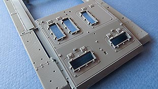 Die Deckplatte der Kasematte ist einteilig mit den offenen Öffnungen der Luken und der Kommandantenkuppel, die man dann eben offen oder geschlsosen bauen kann, wobei, wie gesagt, ohne Inneneinrichtung eine offene Darstellung nur dann Sinn macht, wenn man Figuren in die Luken stellt.