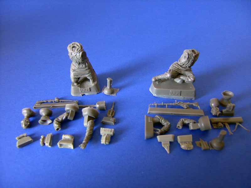 Die Figuren als solche ist bereits nahezu komplett gegossen, nur Arme und das Zubehör müssen angeklebt werden.
