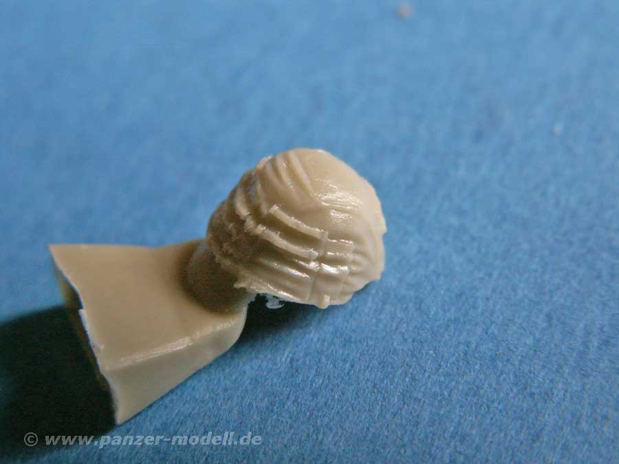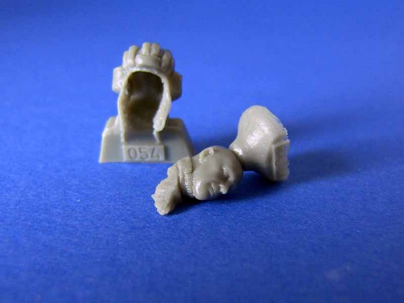 Enthalten sind 5 Köpfe in 1/35, von denen einer mit Schiffchen, die anderen mit schön modellierten Haaren und verschiedenen Frisuren modelliert sind. Dazu gibt es drei Helme um den Figuren ohne Kopfbedeckung ggf. noch eine zu verpassen.