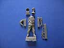 Die Figur als solche ist bereits nahezu komplett gegossen, nur Arme, Kopf (wobei man erwähnen muss,d ass man in diesem Set die Wahl zwischen zwei toll gestalteten Köpfen hat) und das Zubehör müssen angeklebt werden. Als kleine Basis ist ein Stück Boden dargestellt. Eine Bauanleitung gibt es nicht - als Vorlage gibt es das farbige Deckelbild einer fertigen und bemalten Figur.