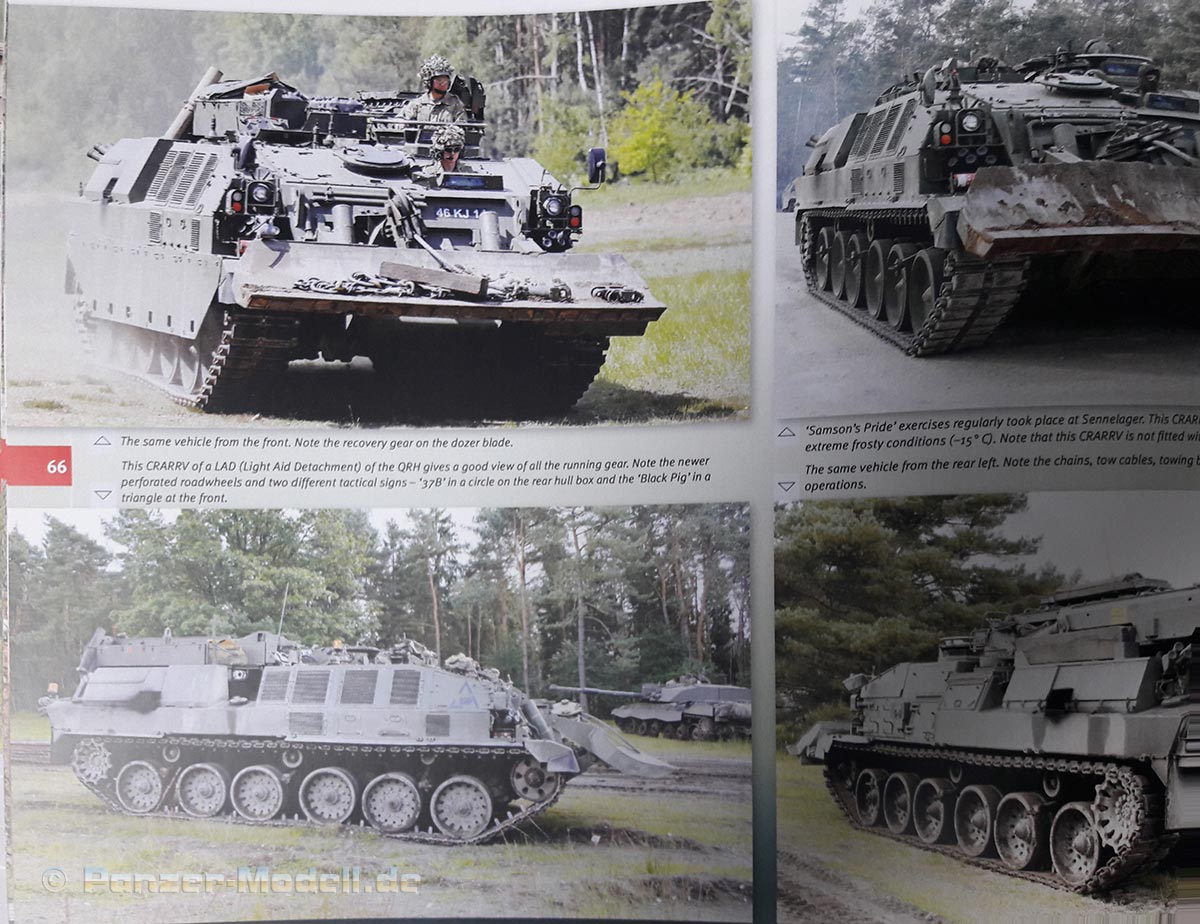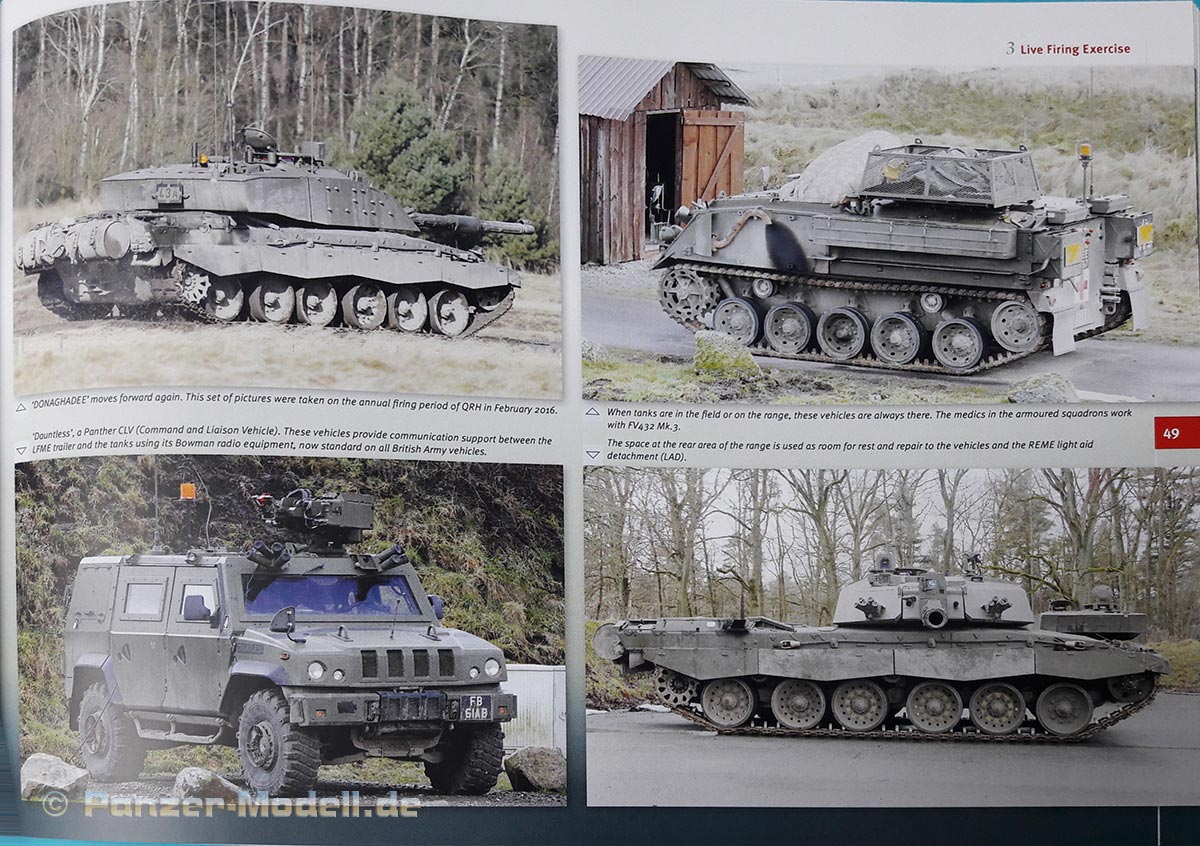 In diesem neuen Buch aus der „In the Field“ Reihe von Trackpad Publishing präsentiert der Autor Sebastian Kreutzkamp einen hervorragenden Bildband über die Kampfpanzer Challenger 2 und deren Derivate im Einsatz bei den British Forces Germany. Nach einer kurzen Einleitung über den Autor und die Entwicklung des Challenger 2, dessen Einsätze und Stationierungen, geht es auf den folgenden Seiten ins eingemachte. Auf über 60 Seiten werden auf durchgehend hochqualitativen Bildern die Panzer in Übung, Einsatz und Transport gezeigt. Wir sehen die Panzer im Gelände, beim scharfen Schuss, verladen auf HET Panzertransportern, bei der Bahnverladung und im Hafen zur Verschiffung in den Irak. Zudem werden die Munition, die Unterstützungsfahrzeuge und die Soldaten gezeigt, welche diese gewaltigen Maschinen bedienen. Im hinteren Teil des Buches befinden sich die Spezialfahrzeuge im Bild: Noch einmal 29 Seiten mit dem Challenger CRARRV Bergepanzer, dem Trojan AVRE Pionierpanzer und dem Titan AVLB Brückenlegepanzer sowie deren Unterstützungsfahrzeuge im Einsatz. Das Buch ist ein Muss für jeden Militärenthusiasten. Absolute Empfehlung!!!Vielen Dank an Michael Shackleton für das Besprechungsmuster.