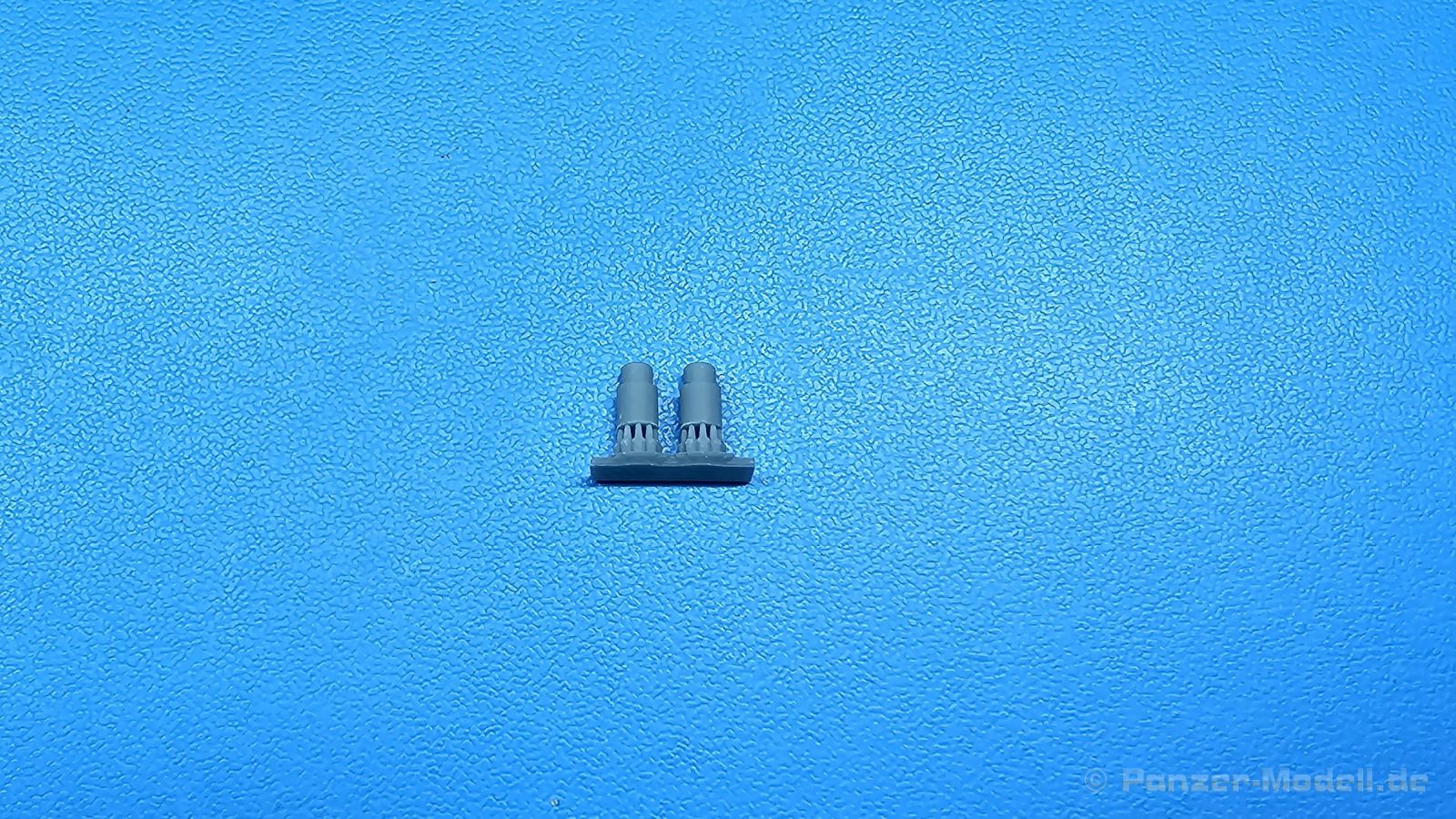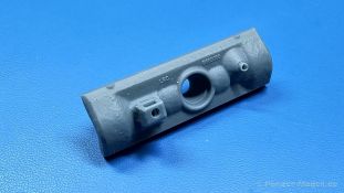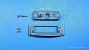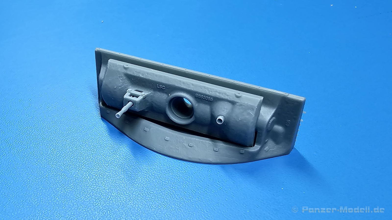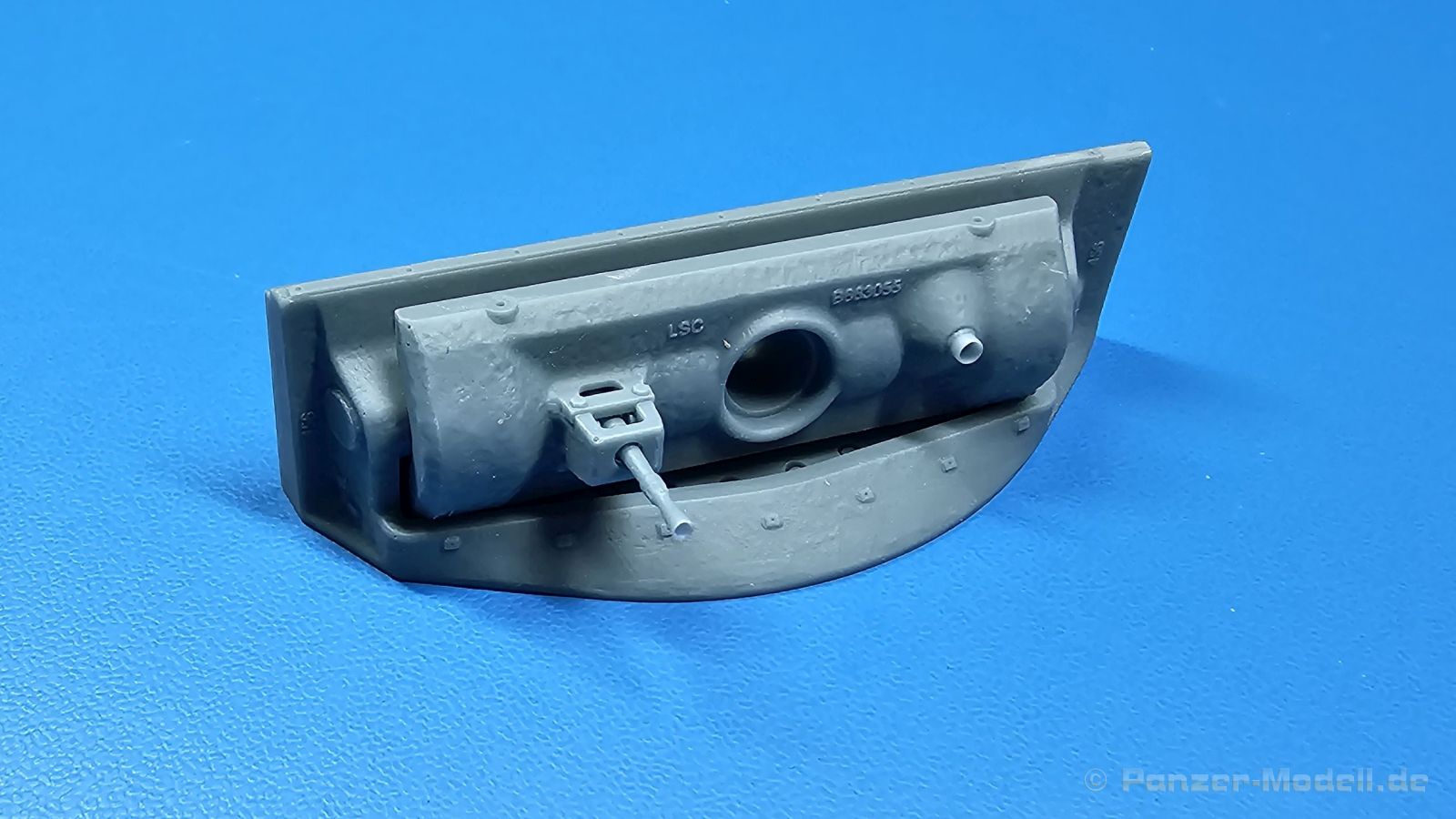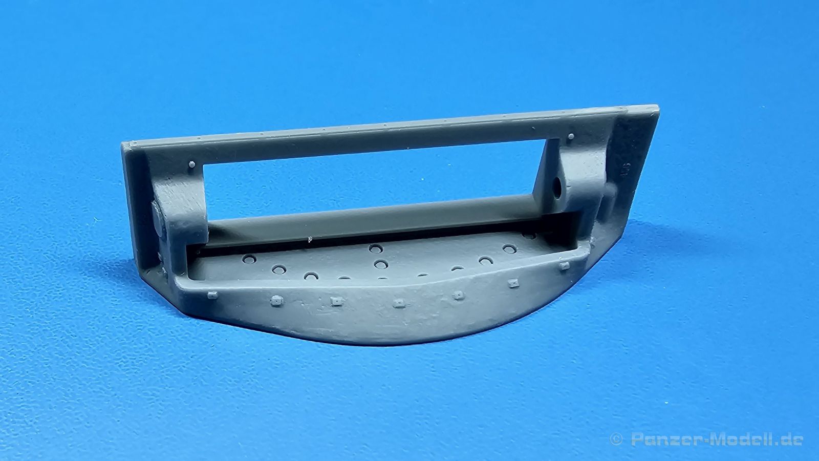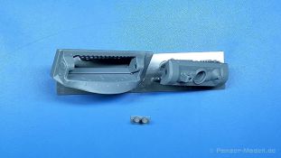 Tamiya kam dieses Jahr mit einem fantastischen britischen Comet auf den Markt. Ein toller Bausatz, den man trotzdem immer noch ein wenig aufwerten kann. Neben den Turmfronten mit Wetterschutzplanen liefert T-Rex Studio in 3D-Drucktechnik auch welche ohne Wetterschutzplane. Es gibt zwar kaum Fotos ohne Blendenplane aus der Zeit des zweiten Weltkrieges (Auf Pininterest konnte ich ein Foto datiert 1945 finden!). Museums- oder Ausstellungsfahrzeuge sind da häufiger ohne Plane anzutreffen. In einem 110 x 70 x 40 mm großen Karton befindet sich eine wieder verschließbare Plastiktüte, in der sich die Turmfront, die Blende, zwei Schildzapfen und das Blenden-MG befindet. Der Druck ist sehr gut - die Teile sind sehr sauber, fein detailliert und fehlerfrei. Turmfront und Blende werden über 2 Schildzapfen beweglich miteinander verbunden und das Blenden-MG von hinten in die Blende eingesetzt. Die Gussstruktur ist sehr gut und glaubhaft wiedergegeben. Sowohl auf der Turmfront als auch auf der Blende sind Gussnummern erhaben wiedergegeben. Die Köpfe der Schildzapfen sind außen an der Blendeneinfassung der Turmfront. Am oberen Rand der Front sind die Schraubenlöcher für die Schrauben, die sonst die Blendenplane halten, auf der Unterseite die versenkten Sechskantschraubenköpfe der Schrauben, die die Front mit dem Turmunterteil verbinden. Und da es sich hier um eine späte Turmfront handelt, finden wir am unteren Rand die zusätzlich aufgeschweissten Blechplättchen mit den Schraubenlöchern für das Unterteil des Plane. Auf der gegossenen Blenden-MG-Panzerung befindet sich noch ein geschraubter Blechstreifen. Das Ende des Zielfernrohr-Mantelrohrs ist fein und scharf gestaltet. Das separat beiliegende Blenden-MG ist der Mündung ausgehöhlt, die Belüftungslöcher des Rohrmantels sind vorhanden, auch wenn man sie in der Blendenpanzerung kaum noch sehen kann. Das Blenden-MG versteckt sich unter den großen Teilen und ist vor den Stützstrukturen schwer auszumachen. Also aufpassen beim Abtrennen der Teile! Die Blendenfront ist explizit für das Tamiya-Modell vorgesehen. Ob es auch an anderen Modellen angebaut werden kann, muss man ausprobieren. Die fast 17 Euro ist in den heutigen Zeiten ein normaler Preis.