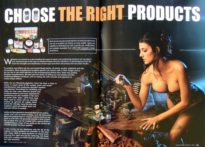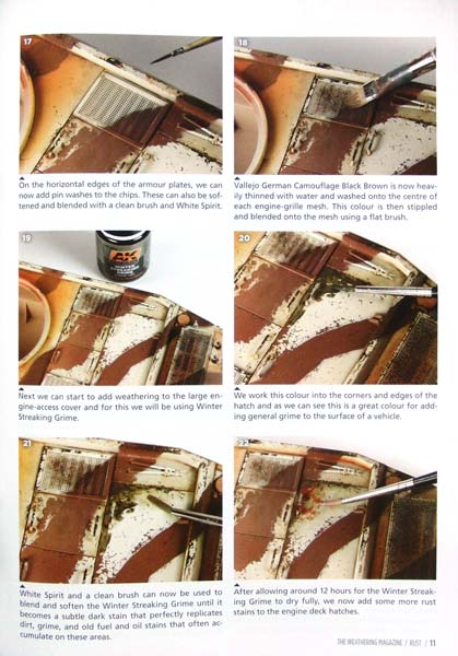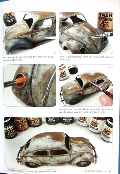 Inhaltlich ist die Magazinreihe komplementär zu den üblichen Modellbaumagazinen statt auf die reinen Bausätze auf verschiedene Techniken der Alterung, Verschmutzung, usw. ausgelegt. Im vorliegenden ersten Magazon geht es um das Thema Rost.