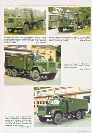 Textlich sind alle Bilder mit brauchbaren Bildunterschriften versehen, die jedem Leser vermitteln was er da sieht. Grobe Schnitzer sind nicht festzustellen. Zu jedem Fahrzeugtyp gibt es dazu ausführliche Beschreibungen der Entwicklung, Produktion und Einführung in die Bundeswehr. Dazu dann technische Daten, Änderungen über die Jahre, Abarten bis zum Zeitpunkt der Aussonderung aus dem aktiven Dienst. An Fahrzeugen finden sich unter anderem in diesem Band: LKW 0,25t MUNGA"F91/4 und /8, LKW 0,75t gl Borgward B 2000A, LKW 1,5t gl Unimog S 404 B, LKW 3t Ford G 398 SAM, LKW 5t gl Daimler Benz LG 315/46, LKW 5t gl MAN 630 L 2A/AE, LKW 7t gl von Magirus Deutz, LKW 10t glw Faun L 908/54 VA, Geräteträger glw Faun GT 8/15, LKW 12t glw Gleitkipper Faun L 912/5050 A, Zugmaschine 12t glw Faun 912/45a, Sattelzugmaschine 20t glw Faun Typ 912 VSA, Sattelzugmaschine 25t glw Faun Typ 1212/45 VSA, Autokran 13t glw Faun LK 1212/485 II und andere. Natürlich kann nicht bei jedem Fahrzeug ins Detail gegangen werden, aber man bekommt einen sehr guten Überblick über wichtiges Material dieser Zeit plus interessante Informationen zur Geschichte des betreffenden Fahrzeugs. Für Modellbauer und interessierte dieser Epoche ein sicher lohnenswerter Band Fahrzeug Profile Vol.25 "Radfahrzeuge des Heeres der Bundeswehr - 1.Fahrzeuggeneration 1956-1976" Die Hefte der Reihe "Fahrzeug-Profile" sind zu beziehen bei: |
