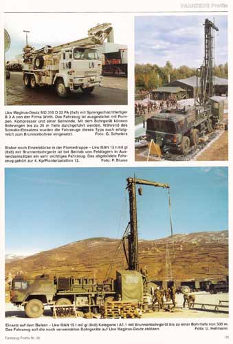 alle Fotos sind vorbildlich mit Bildunterschriften versehen und weisen auf spezielle Details hin oder informieren über Fahrzeug, Besonderheiten oder weisen eben auch auf Truppenteil und/oder Aufnahmeort hin! Darüberhinaus wird durch das Heft ein Textteil geführt, von den Aufgaben der pioniertruppe, der Gliederung, Details einzelner Pionierbattailone, Luftlandepioniere, und ein Blick in die Zukunft. Insgesamt macht aber der Bildteil den wesentlich größten Teil des Heftes aus! An Fahrzeugen finden sich unter anderem in diesem Band: Radplaniergerät ZD 3000, FAG 2,5t, M3 Amphibie, Faltstraßengerät, Lastanhänger 4t, Keiler, Fuchs, Biber, Dachs, Skorpion, MULTI, Minenverlegesystem 85, MINEBREAKER, Mehrzweckraupe LR621, MAN 7t Kipper, Planierraupe PR722B, Mehrzweckarbeitsmaschine AS 6M, 15t tmil Kipper, MD Sprengschachtfertiger, 15t mil gl Brunnenbohrgerät, Hohlplattenbrückensystem, Faltschwimmbrücke, M3 Motorboot, Faltfestbrücke und andere. Ein lohnenswerter Band, der eine gute Übersicht verschafft welches gerät bei der Pionietruppe in Gebrauch ist mit sehr guten und schönen Fotos und Informationen. Fahrzeug Profile Vol.26 "Die Pioniertruppe der Bundeswehr" Die Hefte der Reihe "Fahrzeug-Profile" sind zu beziehen bei: |