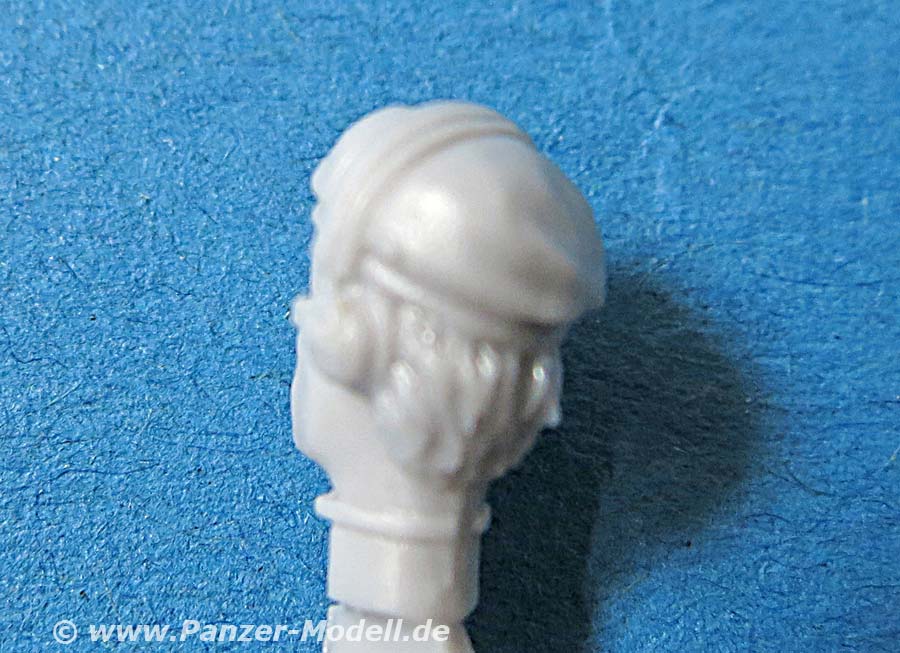 Für alle drei Figuren stehen je zwei verschiedene Köpfe zur Verfügung: einmal mit Schiffchen und einmal mit Panzerschutzmütze - ganz so wie es in den 60er und 70er Jahren bei der Bundeswehr war. Gleich mit angegossen sind die frühen Kopfhörer des Sprechsets der Besatzung.