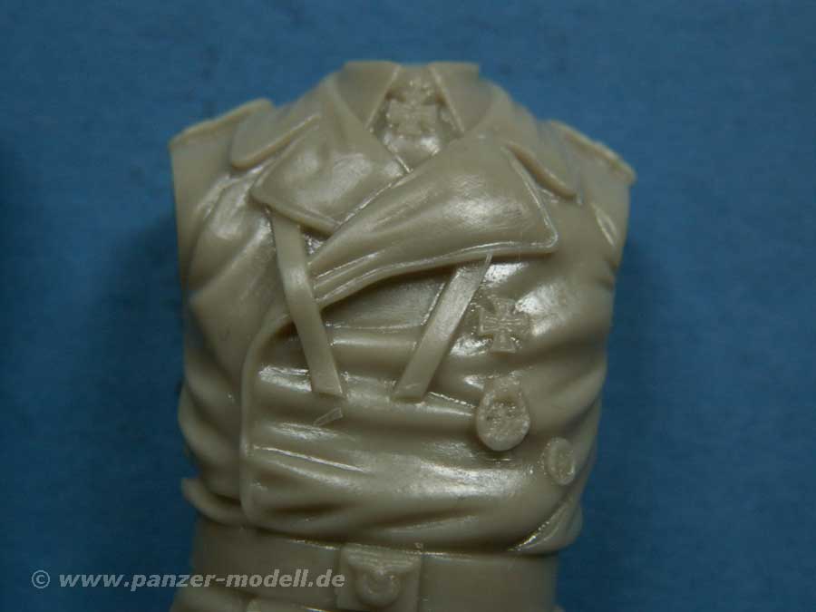 Im Set enthalten sind knapp 40 Resinteile für insgesamt vier Figuren, von denen drei Halbfiguren und eine Vollfigur. Die Details sind zum einen schon sehr gut und fein dargestellt und können durch die vier Platinen mit Fotoätzteilen für Orden und andere Abzeichen noch weiter verfeinert werden.