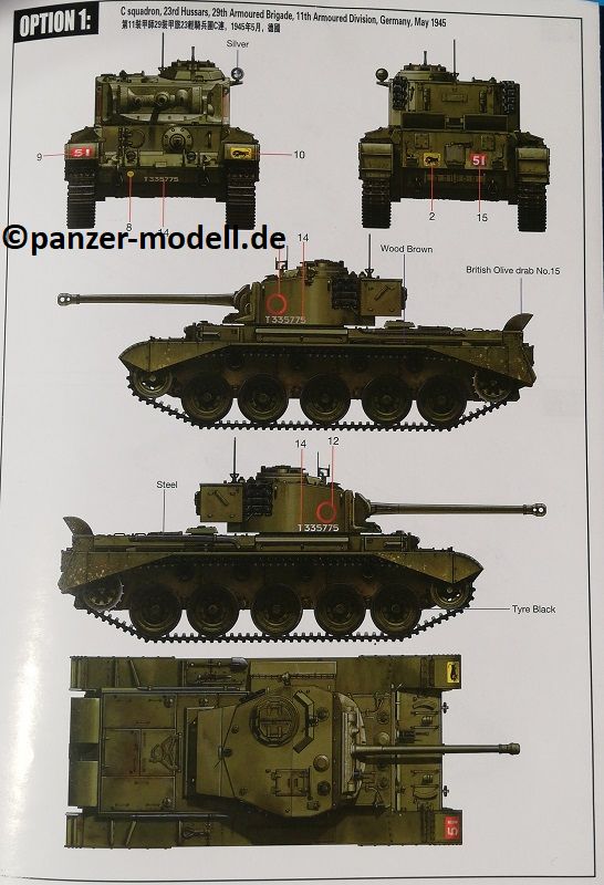 - "Crusader" 3 Royal Tank Regiment, 29th Armoured Brigade, 11th Armoured Division, T335011, Germany April 1945 British Olive Drab No. 15 über alles