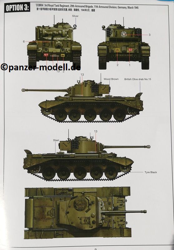 - "Cobra" 3 Royal Tank Regiment, 29th Armoured Brigade, 11th Armoured Division, T335042, Germany March 1945 British Olive Drab No. 15 über alles
