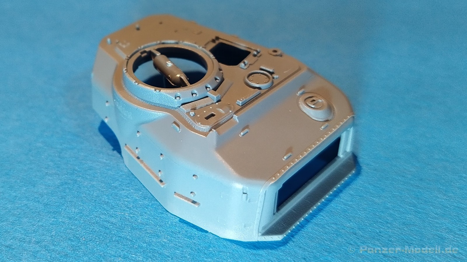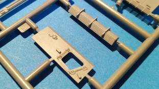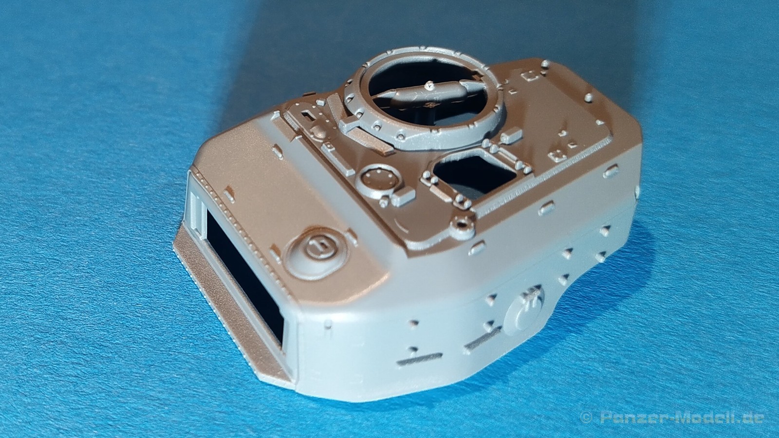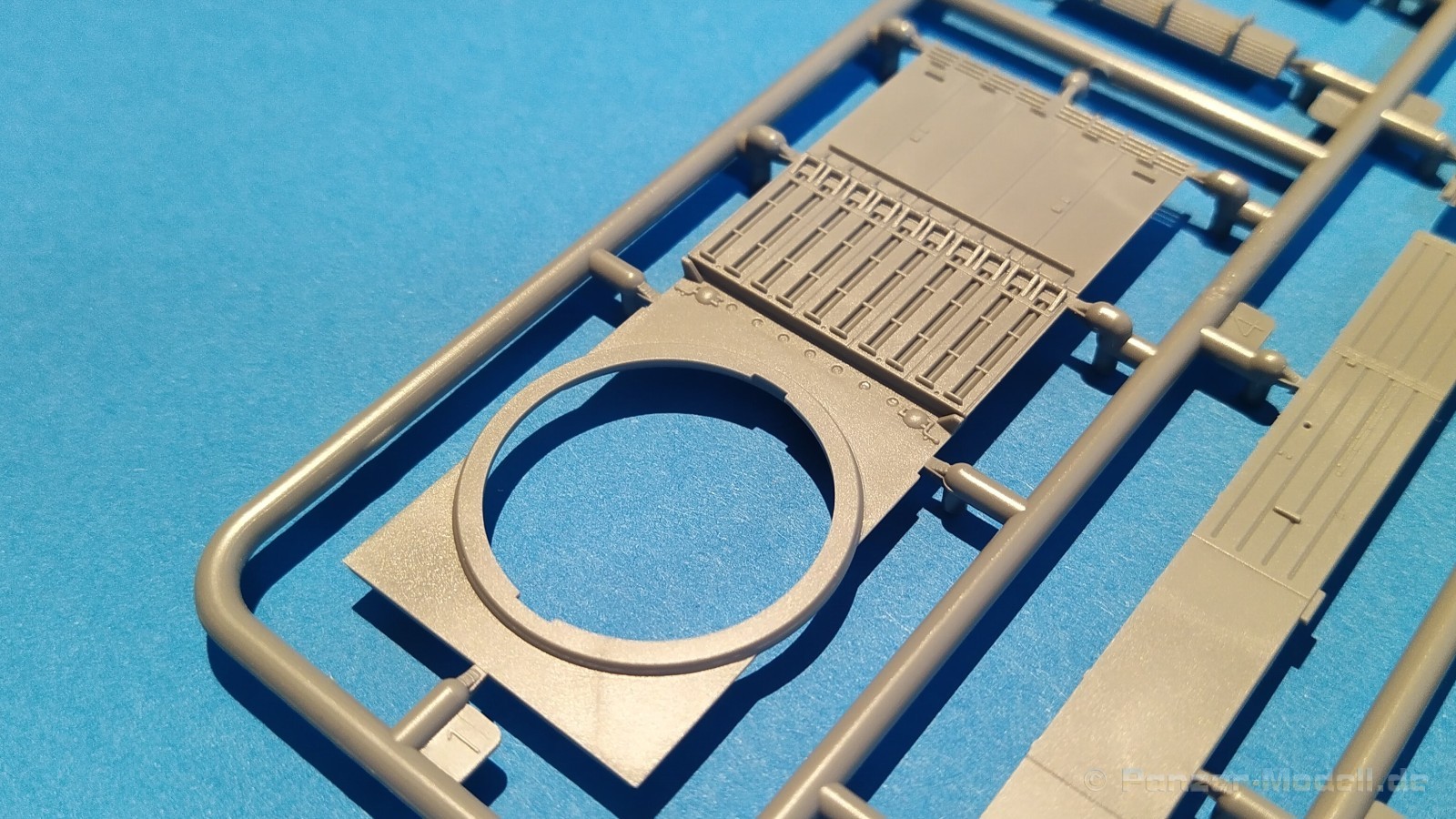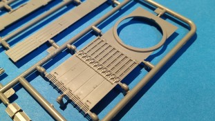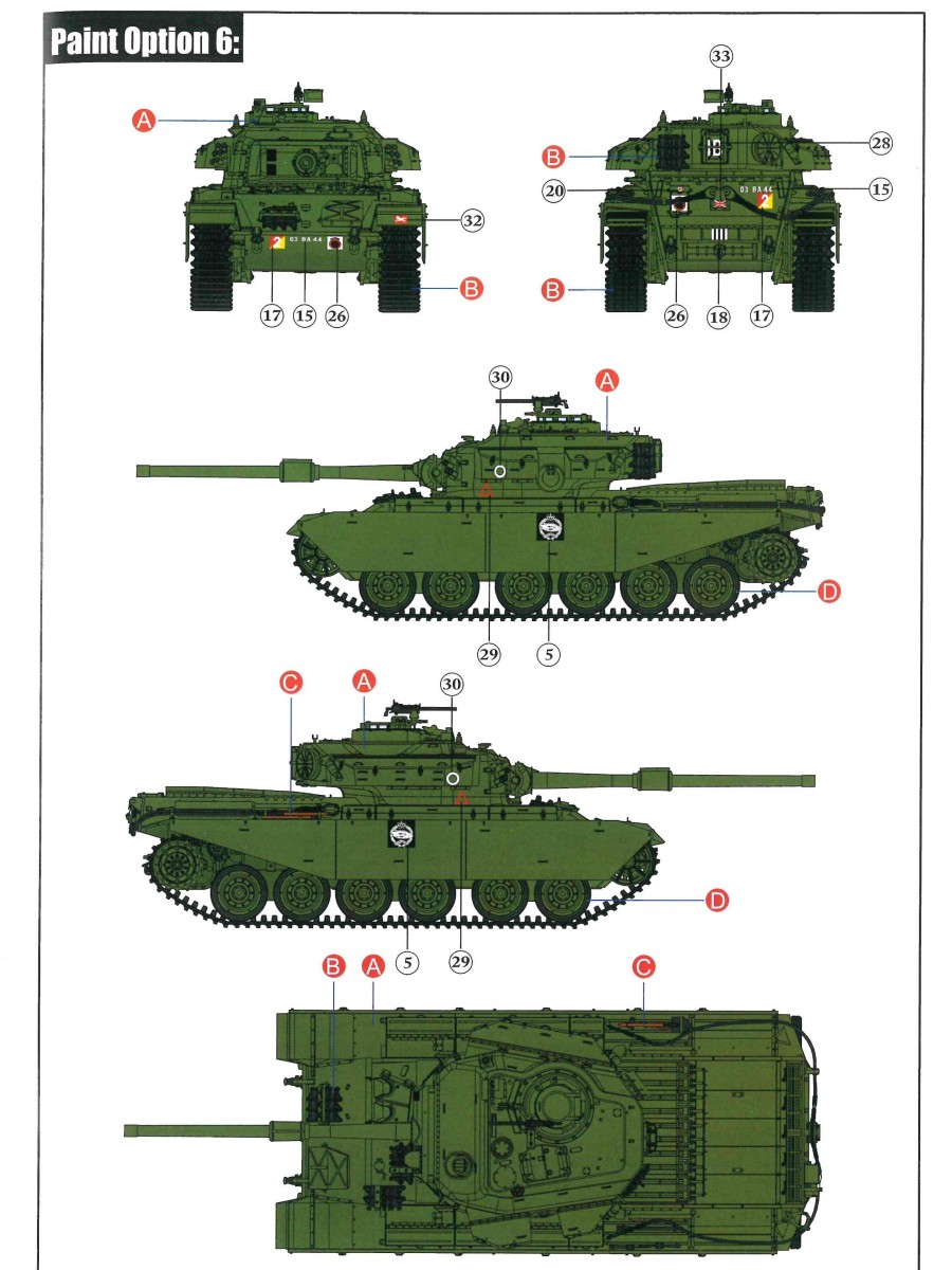 Centurion Tank Mk. 5/1 4.RTR Erfreulicherweise baut der chinesische Hersteller Vespid Models seine Centurion-Reihe im kleinen Maßstabs (1:72) aus. Mit der Bausatz-Nr. VW720017 ist nun eine weitere Variante mit neuen Bauteilen erschienen. Nach der australischen Version (VS720007) gibt es nun die Version „Centurion Mk. 5/1 4.RTR“. Dabei handelt es sich um den Kampfpanzer Centurion in britischen Diensten Anfang der 1960er Jahre in Berlin. Den Bausatz gibt es wie gewohnt in einer „normalen“ und einer „Deluxe Edition“. Die Deluxe Version ist an dem S hinter der Bausatz-Nr. erkennbar. Bei dieser Version ist noch ein gedrehtes Alurohr und ein 3D-Druckteil für die mit Segeltuchabdeckung versehende Kanonenblende beigefügt. Ansonsten sind die Bausatzinhalte identisch. Was verbirgt sich genau hinter der Bausatzbezeichnung? Vespid-Models präsentiert uns hier einen Kampfpanzer Centurion in der Ausführung Mk 5/1 des 4. Royal Tank Regiment (4. RTR), so wie er zwischen Januar 1961 und April 1963 1971 in Berlin zum Einsatz kam. Die C Squadron des 4.RTR stellte in diesem Zeitraum die Panzerkompanie für die Verstärkung der „Berlin Infantry Brigade“, kurz Berlin Brigade. Die Einheit war in den „Spandau Barracks“ in der Nähe des Gefängnisses stationiert. Alle Fahrzeuge waren standardmäßig mit Kettenschürzen (Bazooka Plates) ausgestattet. Unterschiede gab es allerdings bei den verwendeten Rohren der Hauptbewaffnung. Sowohl Type A Barrel ohne Rauchabsauger, als auch Type B Barrel mit Rauchabsauger kamen zum Einsatz. Als Markierungen sah man an den Fahrzeugen die traditionellen „Chinese Eyes“ und größtenteils Namen mit D beginnend. Laut Literatur sollen diese Fahrzeuge in Olive drab lackiert worden sein auf zeitgenössischen Fotos sieht es aber eher nach dem typischen „Dark Bronze Green“ aus. Schauen wir mal in den Karton, was der Bausatz zu bieten hat. Im kleinen Stülpkarton (26 x 16 x 4,7cm) findet man den folgenden Inhalt: - 1x zwanzigseitige Bauanleitung mit 20 Baustufen und 7 Farb- und Markierungsvarianten - 1 Spritzling (A) in grauem Kunststoff mit Teilen für Oberwanne, Kettenabdeckungen und Turmstaukisten - 1 Spritzling (B) in grauem Kunststoff mit Teilen für Turmunterteil, Kanone, Blende, Seitenvorgelege, etc. - 2x Spritzling (C) in grauem Kunststoff mit Laufwerksteilen, Wasserkanister und Munition - 2x Spritzling (D) in grauem Kunststoff mit Kettenteilen - 1 Spritzling (F) in grauem Kunststoff mit Teilen für Wannenfront, Kettenschürzen, etc. - 1 separate Unterwanne - 1 separates Turmoberteil - 1 gedrehtes Alurohr für die Kanone - 1 3D-Druckteil für die Kanonenblende inkl. Segeltuchabdeckung - 4 Stahlseile - 1 Fotoätzplatine (PE) mit Teilen für Winkeleisen etc. - 1 Decalbogen mit 7 Farb- und Markierungsvarianten Die Spritzlinge A, B, C, D, sowie Turmoberteil und Unterwanne sind identisch zur australischen Version. Im Unterschied zum Vorgänger wurde der Spritzling E durch den Spritzling F ersetzt und der klare Spritzling G ist entfallen. Weitere Änderungen betreffen die neuen Ätzteile und Decals. Wie von der vorangegangenen Version gewohnt, sind alle Spritzlinge gut und übersichtlich aufgeteilt und sämtliche Teile lassen sich schnell finden. Die Detaillierung und Gravierung der Bauteile ist wieder sehr fein ausgeführt und hinterlässt einen sehr positiven Eindruck. Fischhäute, Grate oder Auswerfermarken sucht man vergeblich. Die hervorragend umgesetzte Gussstruktur des Turmes und die Ausführung der Schweißnähte sind auch bei diesem Bausatz besonders erwähnenswert. Auch die Oberflächen und Verschraubungen der Lauf- und Treibräder wissen zu gefallen. Der Aufbau des Modells entspricht größtenteils der australischen Version. Bei den Ketten handelt es sich um eine bekannte Kombination aus Segment- und Einzelkettengliedern und diese sind von Innen und außen gut detailliert. Der Clou ist hier der angedeutete Durchhang beim oberen langen Segment. Die Abschleppseile sind aus Stahlseil und müssen mit den Seilkauschen komplettiert werden, wo dafür schon Öffnungen an den Teilen vorhanden sind. Der Turm wird klassisch aus Ober- und Unterteil und versionsspezifischen Anbauteilen zusammengesetzt. Der Faltenwurf des 3D-Druckteils für die Kanonenblende ist sehr schön umgesetzt und werten das Modell noch weiter auf. Für die Bordkanone muss das beiliegende Alurohr nur noch mit dem Rauchabsauger komplettiert werden. Vorbildlich von der Ausführung her. Alternativ kann aber auch das nicht minder gute einteilige Plastikrohr des Bausatzes verwendet werden. Alle Luken der Besatzung lassen sich offen oder geschlossen darstellen. Für die offene Darstellung sind sie alle auf der Innenseite auch detailliert. Fotoätzteile (PE) sind augenscheinlich nicht viele zu verbauen. Wenn man aber genauer in die Bauanleitung sieht, wird aber des Öfteren hier und da schon das ein andere Teil alternativlos benötigt. Aber wenn, dann für sinnvolle Teile, die für weitere Detailierung sorgen. Hier sind z. B. Teile für die Flacheisen an den Kettenabdeckungen vorgesehen. Die Decals kommen auf einem hellblauen Trägerpapier daher, worauf man gut die einzelnen Elemente finden kann. Augenscheinlich sind diese sauber und ordentlich ohne Versatz verdruckt. Die kleine aber dennoch übersichtliche Bauanleitung ist zweisprachig in Englisch und Chinesisch ausgelegt. Zur vorangegangen Version ist sie bis Baustufe 5 identisch. Danach gibt es Änderungen durch die versionsspezifischen Teile. Ein Deckelbild des Bausatzes macht den Anfang in der Bauanleitung, gefolgt von einer Erläuterung der Piktogramme und allgemeinen Arbeitshinweise. Auf Seite 2 befindet sich eine Übersicht der im Bausatz enthaltenen Spritzlinge, separaten Teile, Ätzteile, Decals, etc. Darunter gibt es eine Übersicht der zu verwendenden Farben. Hier werden Farbangaben für die Hersteller Mr. Hobby, Hobby Color, Humbrol und Tamiya genannt. Der eigentliche Bau des Modells startet dann in der Anleitung auf Seite 3. H