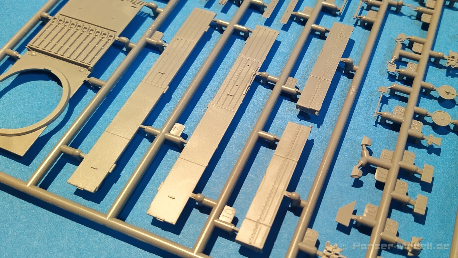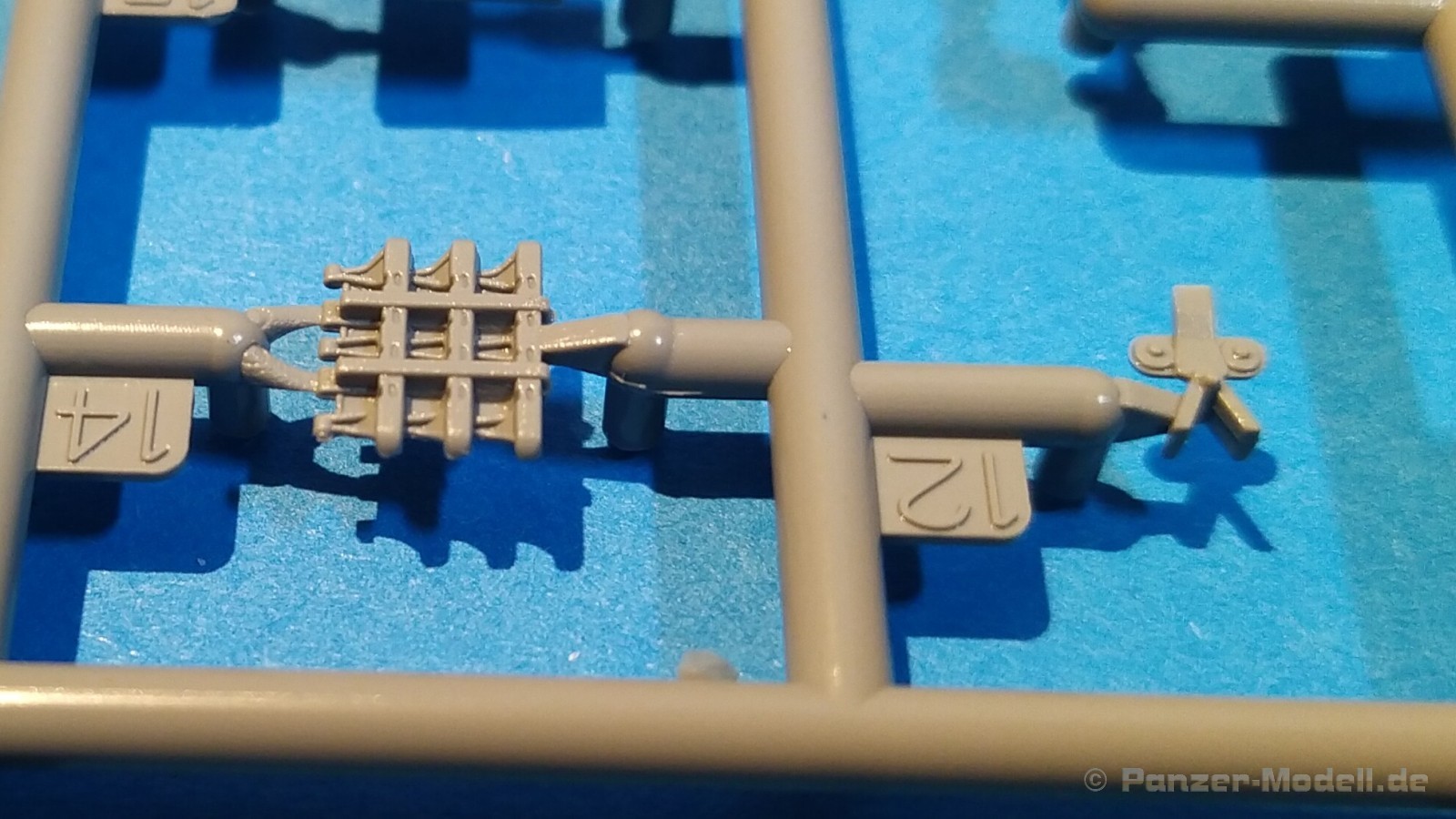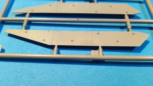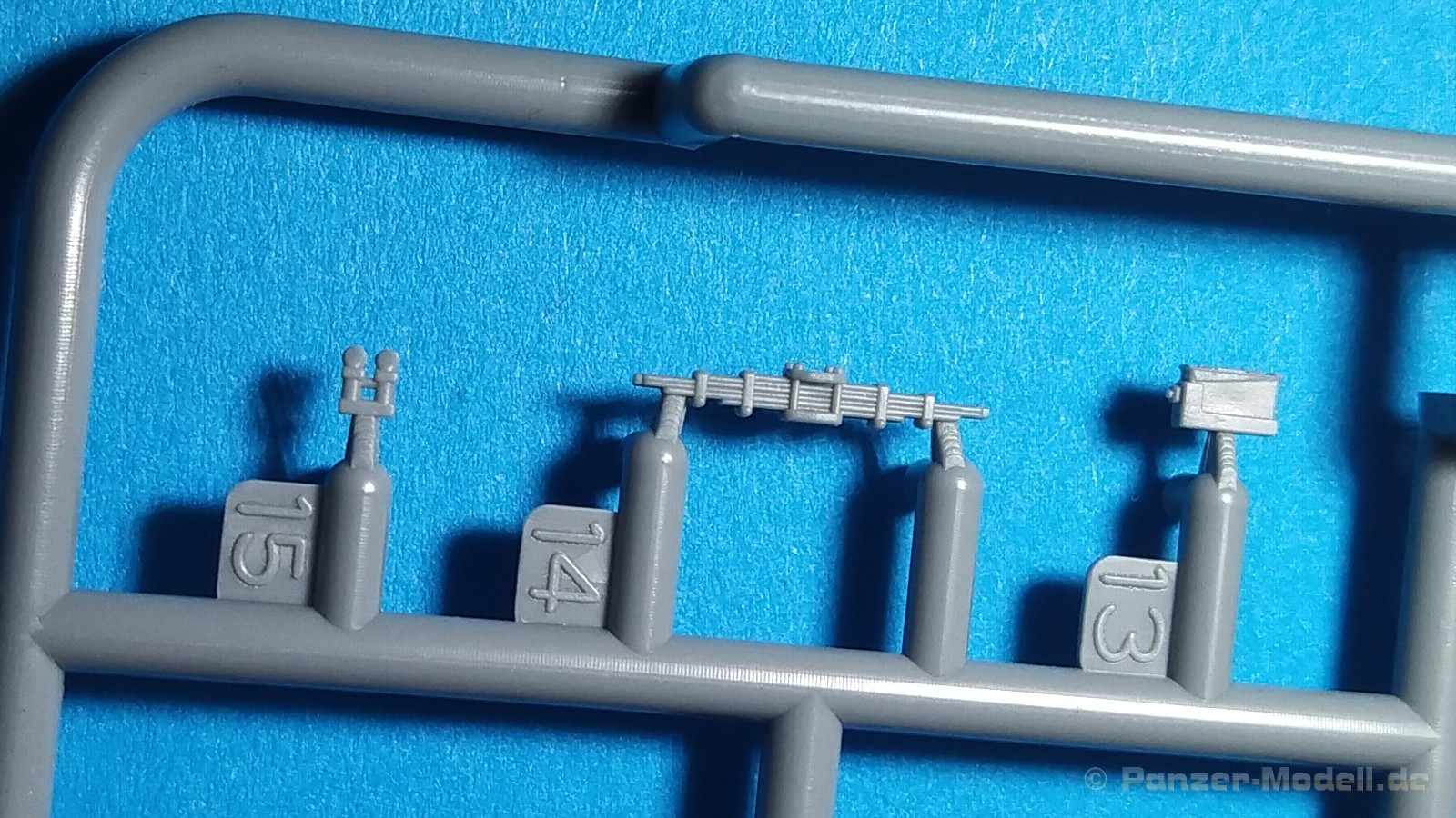 Centurion Tank Mk. 5/1 4.RTR Erfreulicherweise baut der chinesische Hersteller Vespid Models seine Centurion-Reihe im kleinen Maßstabs (1:72) aus. Mit der Bausatz-Nr. VW720017 ist nun eine weitere Variante mit neuen Bauteilen erschienen. Nach der australischen Version (VS720007) gibt es nun die Version „Centurion Mk. 5/1 4.RTR“. Dabei handelt es sich um den Kampfpanzer Centurion in britischen Diensten Anfang der 1960er Jahre in Berlin. Den Bausatz gibt es wie gewohnt in einer „normalen“ und einer „Deluxe Edition“. Die Deluxe Version ist an dem S hinter der Bausatz-Nr. erkennbar. Bei dieser Version ist noch ein gedrehtes Alurohr und ein 3D-Druckteil für die mit Segeltuchabdeckung versehende Kanonenblende beigefügt. Ansonsten sind die Bausatzinhalte identisch. Was verbirgt sich genau hinter der Bausatzbezeichnung? Vespid-Models präsentiert uns hier einen Kampfpanzer Centurion in der Ausführung Mk 5/1 des 4. Royal Tank Regiment (4. RTR), so wie er zwischen Januar 1961 und April 1963 1971 in Berlin zum Einsatz kam. Die C Squadron des 4.RTR stellte in diesem Zeitraum die Panzerkompanie für die Verstärkung der „Berlin Infantry Brigade“, kurz Berlin Brigade. Die Einheit war in den „Spandau Barracks“ in der Nähe des Gefängnisses stationiert. Alle Fahrzeuge waren standardmäßig mit Kettenschürzen (Bazooka Plates) ausgestattet. Unterschiede gab es allerdings bei den verwendeten Rohren der Hauptbewaffnung. Sowohl Type A Barrel ohne Rauchabsauger, als auch Type B Barrel mit Rauchabsauger kamen zum Einsatz. Als Markierungen sah man an den Fahrzeugen die traditionellen „Chinese Eyes“ und größtenteils Namen mit D beginnend. Laut Literatur sollen diese Fahrzeuge in Olive drab lackiert worden sein auf zeitgenössischen Fotos sieht es aber eher nach dem typischen „Dark Bronze Green“ aus. Schauen wir mal in den Karton, was der Bausatz zu bieten hat. Im kleinen Stülpkarton (26 x 16 x 4,7cm) findet man den folgenden Inhalt: - 1x zwanzigseitige Bauanleitung mit 20 Baustufen und 7 Farb- und Markierungsvarianten - 1 Spritzling (A) in grauem Kunststoff mit Teilen für Oberwanne, Kettenabdeckungen und Turmstaukisten - 1 Spritzling (B) in grauem Kunststoff mit Teilen für Turmunterteil, Kanone, Blende, Seitenvorgelege, etc. - 2x Spritzling (C) in grauem Kunststoff mit Laufwerksteilen, Wasserkanister und Munition - 2x Spritzling (D) in grauem Kunststoff mit Kettenteilen - 1 Spritzling (F) in grauem Kunststoff mit Teilen für Wannenfront, Kettenschürzen, etc. - 1 separate Unterwanne - 1 separates Turmoberteil - 1 gedrehtes Alurohr für die Kanone - 1 3D-Druckteil für die Kanonenblende inkl. Segeltuchabdeckung - 4 Stahlseile - 1 Fotoätzplatine (PE) mit Teilen für Winkeleisen etc. - 1 Decalbogen mit 7 Farb- und Markierungsvarianten Die Spritzlinge A, B, C, D, sowie Turmoberteil und Unterwanne sind identisch zur australischen Version. Im Unterschied zum Vorgänger wurde der Spritzling E durch den Spritzling F ersetzt und der klare Spritzling G ist entfallen. Weitere Änderungen betreffen die neuen Ätzteile und Decals. Wie von der vorangegangenen Version gewohnt, sind alle Spritzlinge gut und übersichtlich aufgeteilt und sämtliche Teile lassen sich schnell finden. Die Detaillierung und Gravierung der Bauteile ist wieder sehr fein ausgeführt und hinterlässt einen sehr positiven Eindruck. Fischhäute, Grate oder Auswerfermarken sucht man vergeblich. Die hervorragend umgesetzte Gussstruktur des Turmes und die Ausführung der Schweißnähte sind auch bei diesem Bausatz besonders erwähnenswert. Auch die Oberflächen und Verschraubungen der Lauf- und Treibräder wissen zu gefallen. Der Aufbau des Modells entspricht größtenteils der australischen Version. Bei den Ketten handelt es sich um eine bekannte Kombination aus Segment- und Einzelkettengliedern und diese sind von Innen und außen gut detailliert. Der Clou ist hier der angedeutete Durchhang beim oberen langen Segment. Die Abschleppseile sind aus Stahlseil und müssen mit den Seilkauschen komplettiert werden, wo dafür schon Öffnungen an den Teilen vorhanden sind. Der Turm wird klassisch aus Ober- und Unterteil und versionsspezifischen Anbauteilen zusammengesetzt. Der Faltenwurf des 3D-Druckteils für die Kanonenblende ist sehr schön umgesetzt und werten das Modell noch weiter auf. Für die Bordkanone muss das beiliegende Alurohr nur noch mit dem Rauchabsauger komplettiert werden. Vorbildlich von der Ausführung her. Alternativ kann aber auch das nicht minder gute einteilige Plastikrohr des Bausatzes verwendet werden. Alle Luken der Besatzung lassen sich offen oder geschlossen darstellen. Für die offene Darstellung sind sie alle auf der Innenseite auch detailliert. Fotoätzteile (PE) sind augenscheinlich nicht viele zu verbauen. Wenn man aber genauer in die Bauanleitung sieht, wird aber des Öfteren hier und da schon das ein andere Teil alternativlos benötigt. Aber wenn, dann für sinnvolle Teile, die für weitere Detailierung sorgen. Hier sind z. B. Teile für die Flacheisen an den Kettenabdeckungen vorgesehen. Die Decals kommen auf einem hellblauen Trägerpapier daher, worauf man gut die einzelnen Elemente finden kann. Augenscheinlich sind diese sauber und ordentlich ohne Versatz verdruckt. Die kleine aber dennoch übersichtliche Bauanleitung ist zweisprachig in Englisch und Chinesisch ausgelegt. Zur vorangegangen Version ist sie bis Baustufe 5 identisch. Danach gibt es Änderungen durch die versionsspezifischen Teile. Ein Deckelbild des Bausatzes macht den Anfang in der Bauanleitung, gefolgt von einer Erläuterung der Piktogramme und allgemeinen Arbeitshinweise. Auf Seite 2 befindet sich eine Übersicht der im Bausatz enthaltenen Spritzlinge, separaten Teile, Ätzteile, Decals, etc. Darunter gibt es eine Übersicht der zu verwendenden Farben. Hier werden Farbangaben für die Hersteller Mr. Hobby, Hobby Color, Humbrol und Tamiya genannt. Der eigentliche Bau des Modells startet dann in der Anleitung auf Seite 3. H