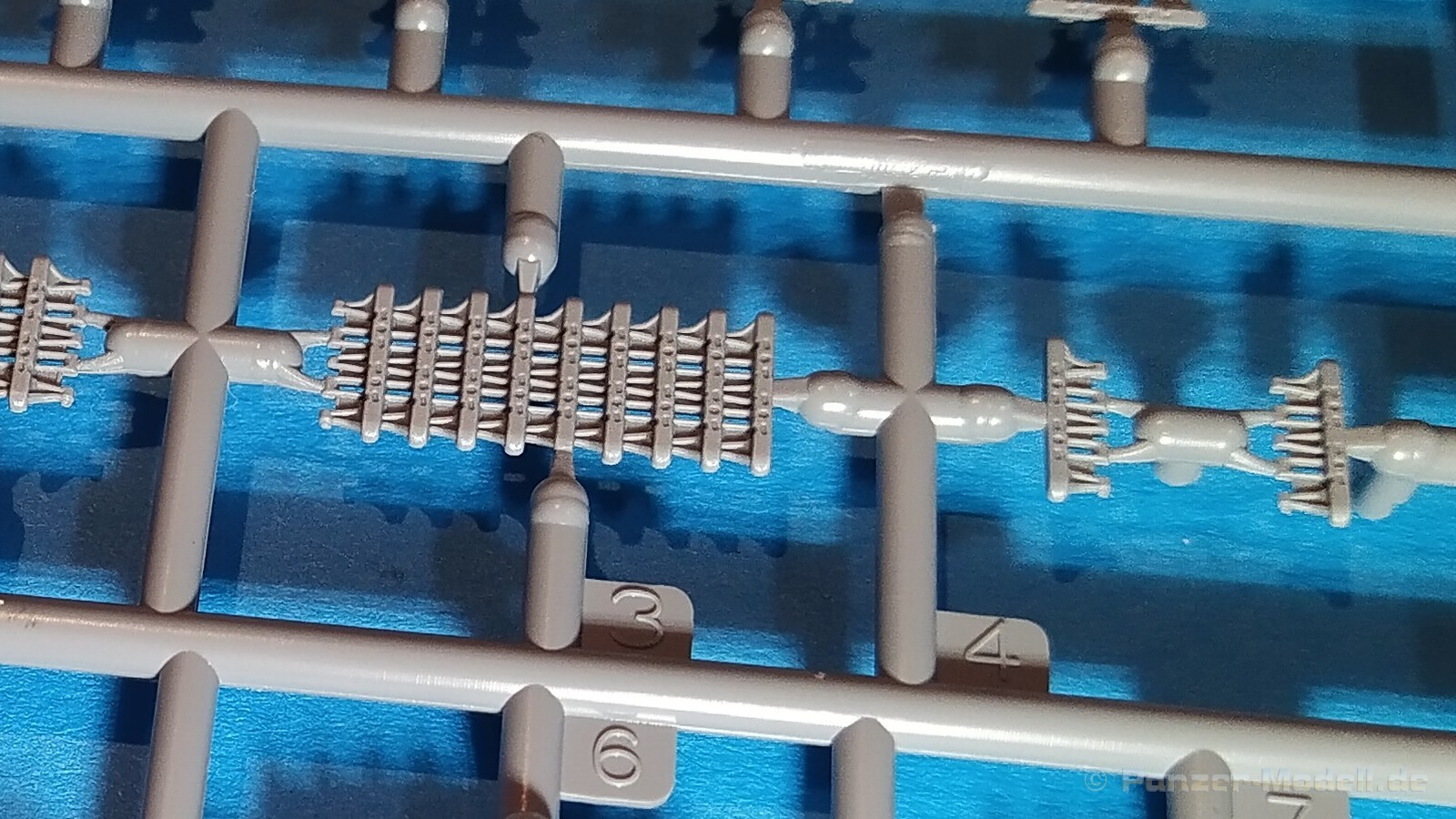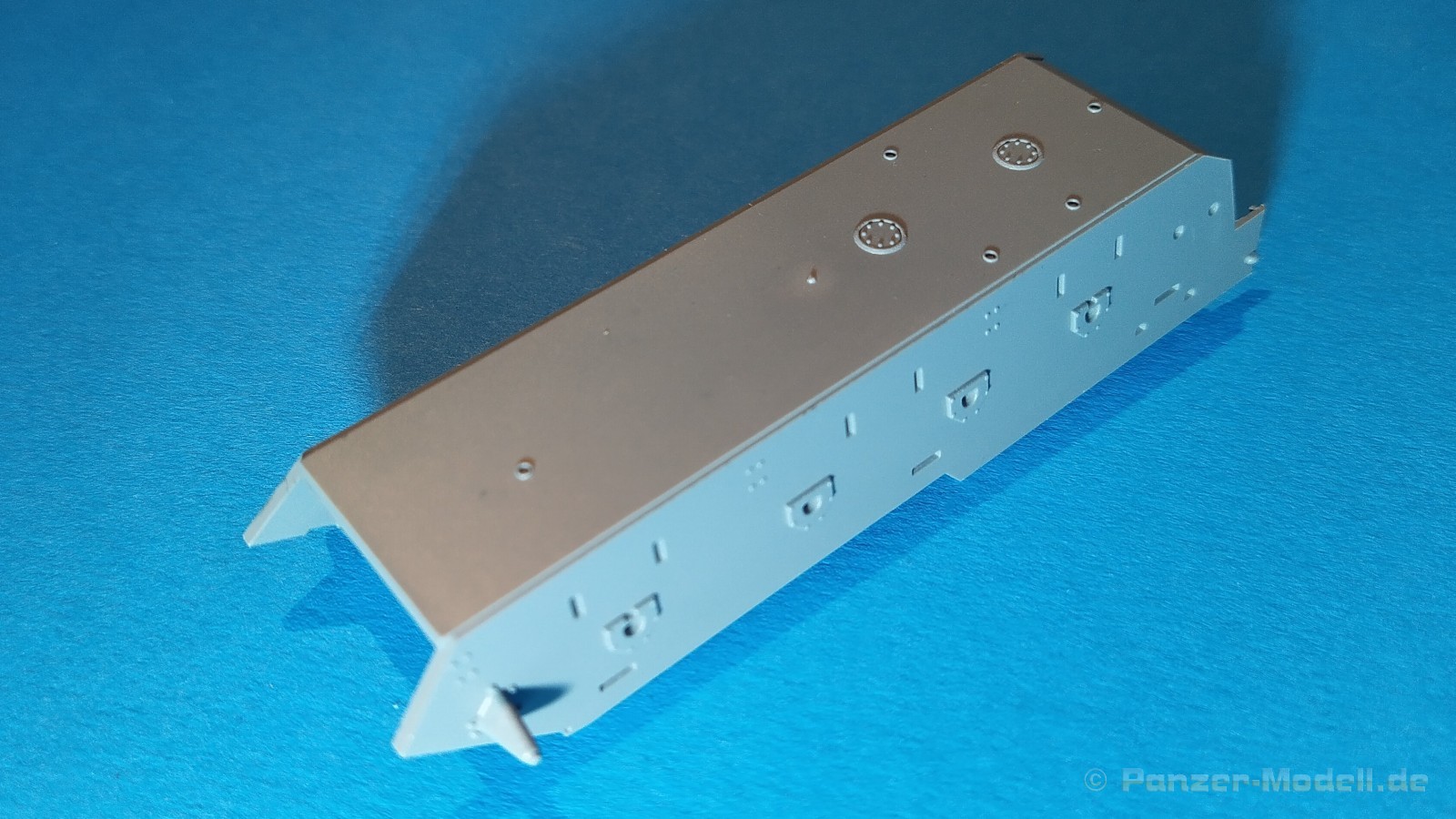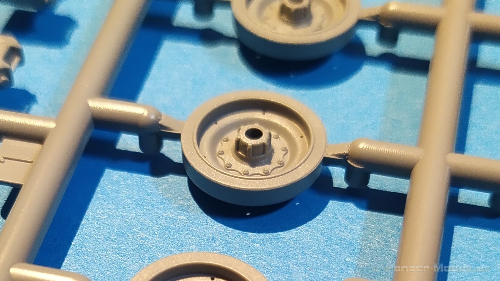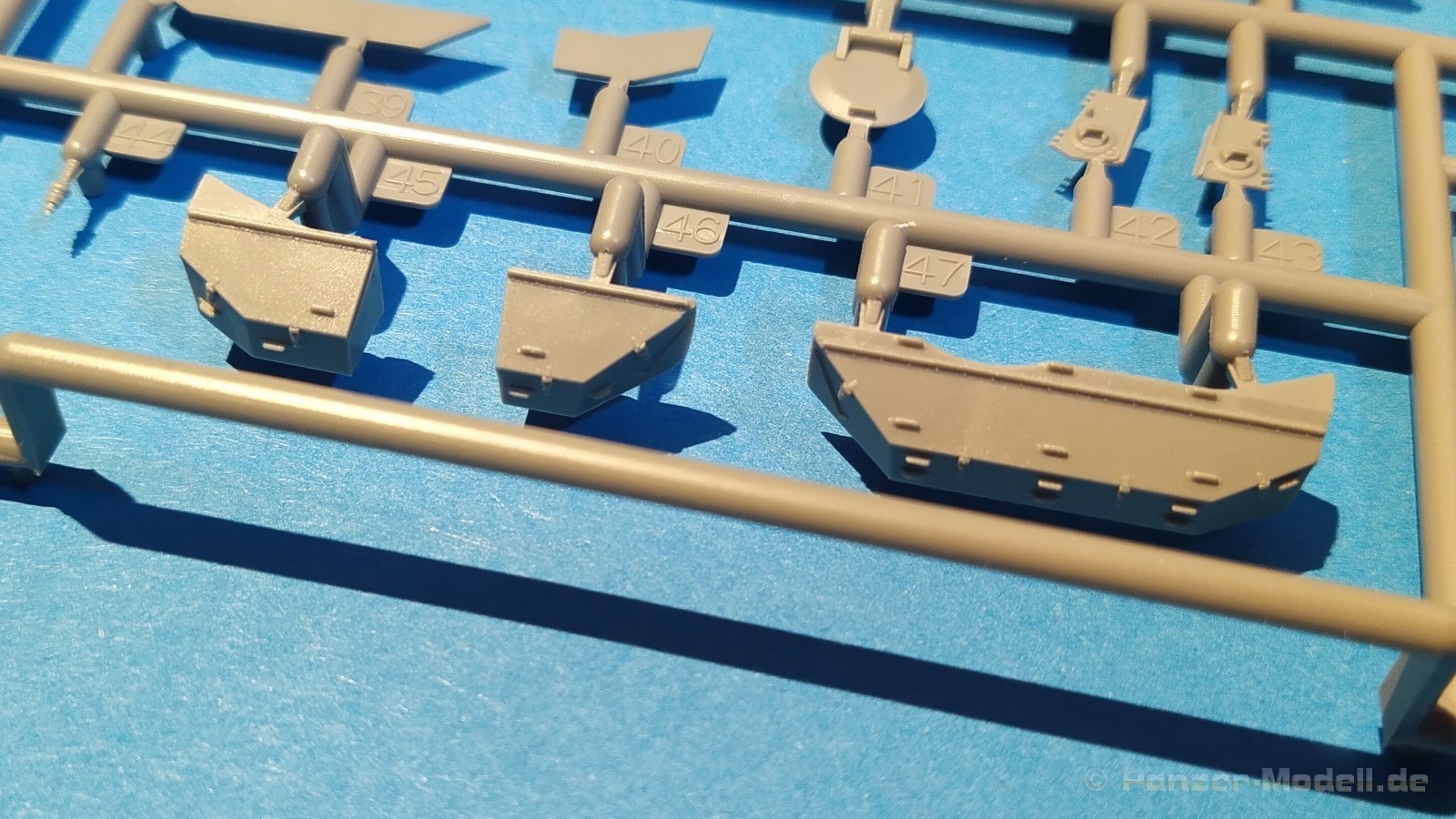 Centurion Tank Mk. 5/1 4.RTR Erfreulicherweise baut der chinesische Hersteller Vespid Models seine Centurion-Reihe im kleinen Maßstabs (1:72) aus. Mit der Bausatz-Nr. VW720017 ist nun eine weitere Variante mit neuen Bauteilen erschienen. Nach der australischen Version (VS720007) gibt es nun die Version „Centurion Mk. 5/1 4.RTR“. Dabei handelt es sich um den Kampfpanzer Centurion in britischen Diensten Anfang der 1960er Jahre in Berlin. Den Bausatz gibt es wie gewohnt in einer „normalen“ und einer „Deluxe Edition“. Die Deluxe Version ist an dem S hinter der Bausatz-Nr. erkennbar. Bei dieser Version ist noch ein gedrehtes Alurohr und ein 3D-Druckteil für die mit Segeltuchabdeckung versehende Kanonenblende beigefügt. Ansonsten sind die Bausatzinhalte identisch. Was verbirgt sich genau hinter der Bausatzbezeichnung? Vespid-Models präsentiert uns hier einen Kampfpanzer Centurion in der Ausführung Mk 5/1 des 4. Royal Tank Regiment (4. RTR), so wie er zwischen Januar 1961 und April 1963 1971 in Berlin zum Einsatz kam. Die C Squadron des 4.RTR stellte in diesem Zeitraum die Panzerkompanie für die Verstärkung der „Berlin Infantry Brigade“, kurz Berlin Brigade. Die Einheit war in den „Spandau Barracks“ in der Nähe des Gefängnisses stationiert. Alle Fahrzeuge waren standardmäßig mit Kettenschürzen (Bazooka Plates) ausgestattet. Unterschiede gab es allerdings bei den verwendeten Rohren der Hauptbewaffnung. Sowohl Type A Barrel ohne Rauchabsauger, als auch Type B Barrel mit Rauchabsauger kamen zum Einsatz. Als Markierungen sah man an den Fahrzeugen die traditionellen „Chinese Eyes“ und größtenteils Namen mit D beginnend. Laut Literatur sollen diese Fahrzeuge in Olive drab lackiert worden sein auf zeitgenössischen Fotos sieht es aber eher nach dem typischen „Dark Bronze Green“ aus. Schauen wir mal in den Karton, was der Bausatz zu bieten hat. Im kleinen Stülpkarton (26 x 16 x 4,7cm) findet man den folgenden Inhalt: - 1x zwanzigseitige Bauanleitung mit 20 Baustufen und 7 Farb- und Markierungsvarianten - 1 Spritzling (A) in grauem Kunststoff mit Teilen für Oberwanne, Kettenabdeckungen und Turmstaukisten - 1 Spritzling (B) in grauem Kunststoff mit Teilen für Turmunterteil, Kanone, Blende, Seitenvorgelege, etc. - 2x Spritzling (C) in grauem Kunststoff mit Laufwerksteilen, Wasserkanister und Munition - 2x Spritzling (D) in grauem Kunststoff mit Kettenteilen - 1 Spritzling (F) in grauem Kunststoff mit Teilen für Wannenfront, Kettenschürzen, etc. - 1 separate Unterwanne - 1 separates Turmoberteil - 1 gedrehtes Alurohr für die Kanone - 1 3D-Druckteil für die Kanonenblende inkl. Segeltuchabdeckung - 4 Stahlseile - 1 Fotoätzplatine (PE) mit Teilen für Winkeleisen etc. - 1 Decalbogen mit 7 Farb- und Markierungsvarianten Die Spritzlinge A, B, C, D, sowie Turmoberteil und Unterwanne sind identisch zur australischen Version. Im Unterschied zum Vorgänger wurde der Spritzling E durch den Spritzling F ersetzt und der klare Spritzling G ist entfallen. Weitere Änderungen betreffen die neuen Ätzteile und Decals. Wie von der vorangegangenen Version gewohnt, sind alle Spritzlinge gut und übersichtlich aufgeteilt und sämtliche Teile lassen sich schnell finden. Die Detaillierung und Gravierung der Bauteile ist wieder sehr fein ausgeführt und hinterlässt einen sehr positiven Eindruck. Fischhäute, Grate oder Auswerfermarken sucht man vergeblich. Die hervorragend umgesetzte Gussstruktur des Turmes und die Ausführung der Schweißnähte sind auch bei diesem Bausatz besonders erwähnenswert. Auch die Oberflächen und Verschraubungen der Lauf- und Treibräder wissen zu gefallen. Der Aufbau des Modells entspricht größtenteils der australischen Version. Bei den Ketten handelt es sich um eine bekannte Kombination aus Segment- und Einzelkettengliedern und diese sind von Innen und außen gut detailliert. Der Clou ist hier der angedeutete Durchhang beim oberen langen Segment. Die Abschleppseile sind aus Stahlseil und müssen mit den Seilkauschen komplettiert werden, wo dafür schon Öffnungen an den Teilen vorhanden sind. Der Turm wird klassisch aus Ober- und Unterteil und versionsspezifischen Anbauteilen zusammengesetzt. Der Faltenwurf des 3D-Druckteils für die Kanonenblende ist sehr schön umgesetzt und werten das Modell noch weiter auf. Für die Bordkanone muss das beiliegende Alurohr nur noch mit dem Rauchabsauger komplettiert werden. Vorbildlich von der Ausführung her. Alternativ kann aber auch das nicht minder gute einteilige Plastikrohr des Bausatzes verwendet werden. Alle Luken der Besatzung lassen sich offen oder geschlossen darstellen. Für die offene Darstellung sind sie alle auf der Innenseite auch detailliert. Fotoätzteile (PE) sind augenscheinlich nicht viele zu verbauen. Wenn man aber genauer in die Bauanleitung sieht, wird aber des Öfteren hier und da schon das ein andere Teil alternativlos benötigt. Aber wenn, dann für sinnvolle Teile, die für weitere Detailierung sorgen. Hier sind z. B. Teile für die Flacheisen an den Kettenabdeckungen vorgesehen. Die Decals kommen auf einem hellblauen Trägerpapier daher, worauf man gut die einzelnen Elemente finden kann. Augenscheinlich sind diese sauber und ordentlich ohne Versatz verdruckt. Die kleine aber dennoch übersichtliche Bauanleitung ist zweisprachig in Englisch und Chinesisch ausgelegt. Zur vorangegangen Version ist sie bis Baustufe 5 identisch. Danach gibt es Änderungen durch die versionsspezifischen Teile. Ein Deckelbild des Bausatzes macht den Anfang in der Bauanleitung, gefolgt von einer Erläuterung der Piktogramme und allgemeinen Arbeitshinweise. Auf Seite 2 befindet sich eine Übersicht der im Bausatz enthaltenen Spritzlinge, separaten Teile, Ätzteile, Decals, etc. Darunter gibt es eine Übersicht der zu verwendenden Farben. Hier werden Farbangaben für die Hersteller Mr. Hobby, Hobby Color, Humbrol und Tamiya genannt. Der eigentliche Bau des Modells startet dann in der Anleitung auf Seite 3. H