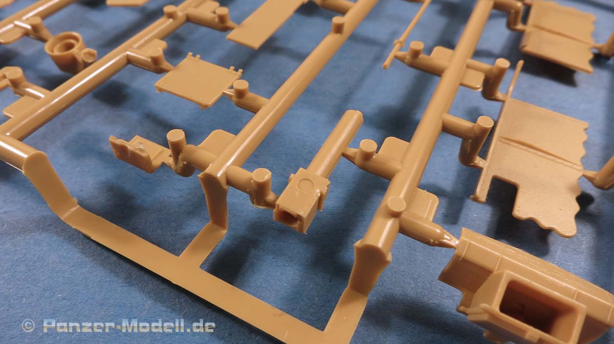 Der Guss der Teile ist gut, feine Details und vor allem saubere Teile ohne Ausflüsse oder Formversatz Die Angüsse sind relativ human in Anzahl und Größe.