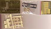 Dieses umfangreiche Set umfasst nicht nur 2 großen, 2 mittlere und einen kleinen PE Bogen, Plastikrundmaterial, Stahldraht, sondern auch Resinteile und einen Acetatbogen für das Armaturenbrett.