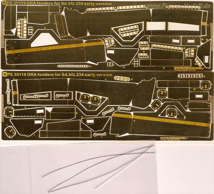 Mit dem Set 35119 gibt es nun das Sd.Kfz.234 early version Set, das für alle 4 Sd.Kfz.234 Varianten von Dragon in der frühen Version gedacht ist, bzw. die Modelle in die frühe Version versetzt.