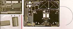 An PE Teilen finden sich hier: Neue Fla-MG Lafette plus Details, zwei Blendenabdeckungen für die frühe und späte Version, Verschlüssen und Scharniere, neue vordere Kettenbleche und seitliche Laufstege mit Schürzenhalterungen, sehr detailierte Kanonenhalterung, Ersatzgliederhalterung mit Bolzen und Kettchen, Werkzeughalterungen, Sicherungsstifte, Lüftergitter, Abdeckungen, Gepäckkisten am Heck (auch zum öffnen) in drei verschiedenen Versionen, Auspuff- und Wagenheberhalter, usw.