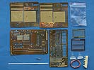 Dieses Set umfasst vier große, zwei kleine PE Platinen, Plastikrundmaterial, Metallstangen, Resinteile, Kupferkabel und Metallkleinteile.