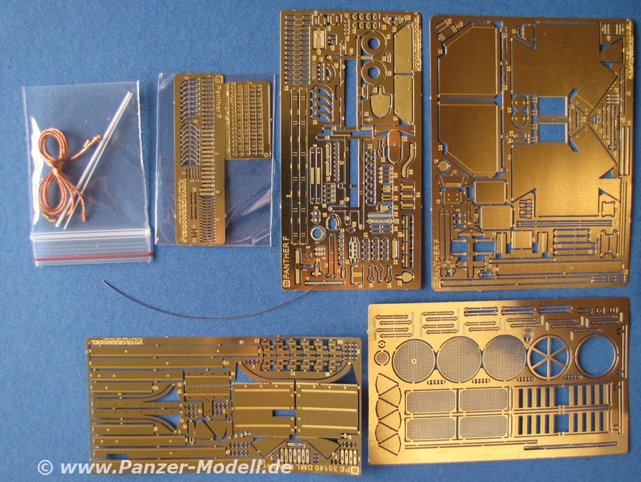 Für den Panther F von Dragon gibt es nun diesen Basis PE Satz - man darf sich übrigens nicht von den Deckelfotos verwirren lassen, denn diese zeigen oft alle möglichen PE Sets die es für das Modell gibt, nicht nur die Teile des betreffenden Zurüstsets.