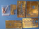 An Teilen zur Nachdetailierung enthalten sind neue Frontschutzbleche, die Mehrfachkette für die Kanonenzurrung, die Seitentrittbleche, Lukenverriegelung und Scharniere, Lukenstopper, haufenweise Lukenhalterungen, Details für den Rohrreinigungsbehälter, neue Halterungen für Ersatzkettenglieter mit Sicherungsbolzen und Kettchen, Lüftergitter und Motordeckdetails, komplette Staukisten am Heck aus PE Teilen, usw..