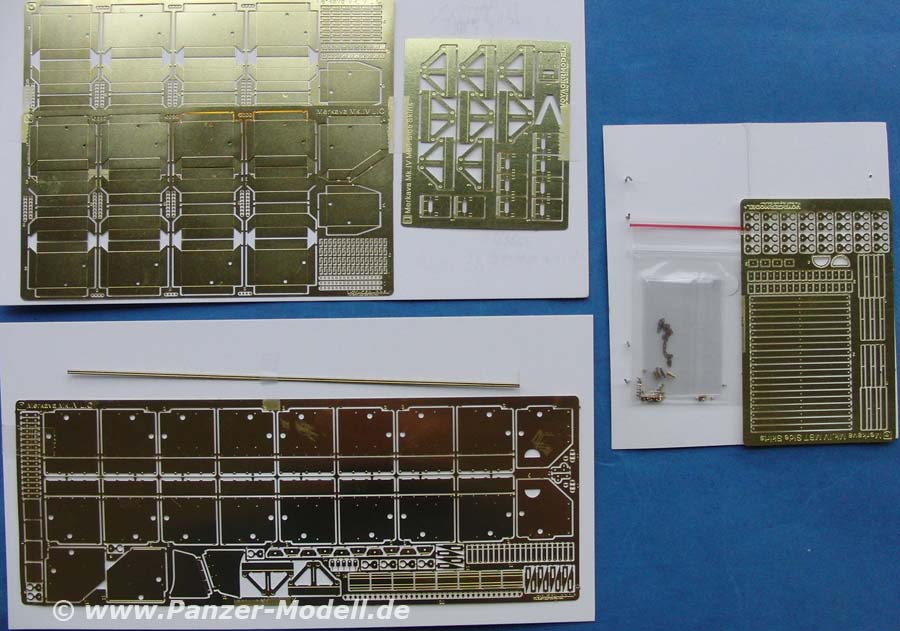 Enthalten im Set sind komplett alle der Schürzenelemente, die mehrteilig und extrem detailliert sind. neben den einzeln einsetzbaren Nietenköpfen werden sämtliche Detail, wie Verstärkunegn und erhabene Details als einzelne PE Teile aufgebracht.