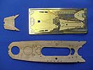 Damit hätten wir dann aber auch alle Kritikpunkte abgehandelt! Also zu den erfreulichen Teilen der Besprechung. Das Set besteht aus zwei Holzdecks und einer sehr umfangreichen Ätzplatine. Die Holzdecks sind so unglaublich dünn, man mag es kaum glauben. Wenn man jetzt die Folie von der Rückseite abzieht (Holzdecks sind in der Regel selbstklebend) haben wir ein Deck ähnlicher Stärke wie Papier! Einfach super! Dass der Laserschnitt perfekt ist muss man da wohl kaum noch erwähnen. Die dazugehörigen Ätzteile enthalten alle metallenen Decksteile, sowie Anbauteile, wie Winden, Gitterroste, Verzierungen, Anker + Ketten, usw und so fort.