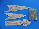 Wer jetzt denkt, dass Holzdecks in 1/700 nur überdimensioniert wirken können, irrt gewaltig. Man hat es hier geschafft wirklich hauchdünnes Holz exakt zuzuschneiden und mit entsprechender Plankenstruktur zu versehen. Die Bereiche von Aufbauten und Details sind entsprechend eingraviertz ins Holz.