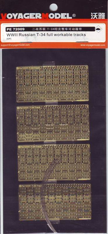 NUnter der Nummer PE 72009 gibt es ein weiteres PE Set in 1/72 für den T-34, und zwar WWII Russian T-34 full workable tracks.