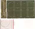 Das Material ist einem interessanten Grünton gehalten, und macht fast den Eindruck von dünnem Kunststoff. Die Verarbeitung ist exzellent - die Materialstärke ist exakt und stimmig. Zusätzlich zu den Schürzenelementen gibt es die Halterungen als PE Teile plus Metalldraht und Plastikrundmaterial. Die Halterungen sind extrem detailiert mit kleinen Schräubchen und nietenköpfen