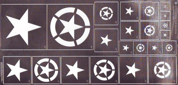 Eine weitere Schablone gibt aus dem Hause Voyager unter der Nummer PEA 136. Hierbei handelt es sich bei den WWII US Army Tank Stenciling Templates type 1 um die amerikanischen Hoheitsabzeichen, sprich Sterne.