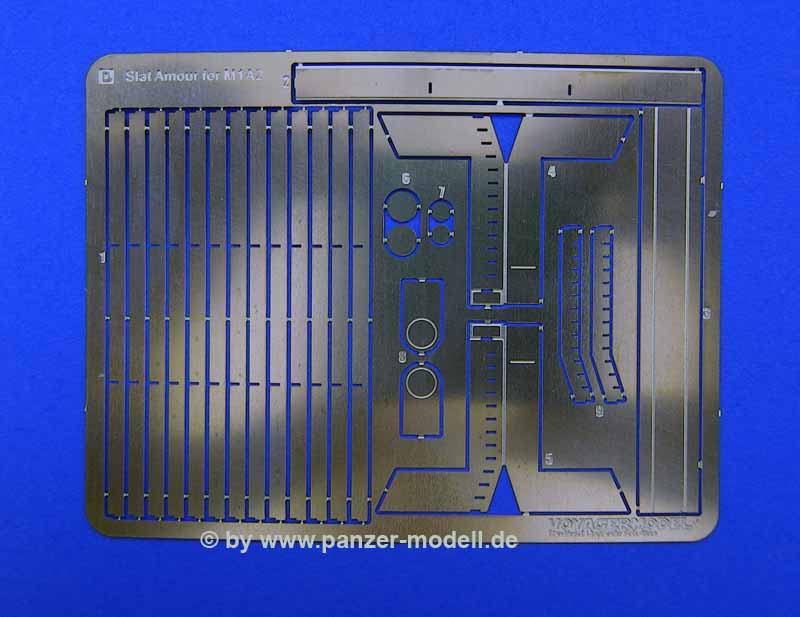 Hierbei handelt es sich um eine Gitterabstandspanzerung über den Grätings am Heck der M1A2 SEP wie sie bereits 2004 im Irak eingesetzt wurde. Damit man sich von dem fertig gebauten Zurüstteil ein Bild machen kann habe ich ein Produktfoto von Voyager eingefügt.