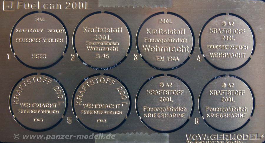 Mit diesen Set kann man mindestens vier 200l Fässer mit deutschen Beschriftungen vesehen, bzw die Stirndeckel ergänzen/austauschen. Die Beschriftungen sind vielfältig und sehr fein geätzt. Und sie sind ohne Rechtschreibfehler, was nicht immer eine selbstverständlichkeit bei Firmen aus fernost ist. Wenn man aufrecht stehende Fässer nimmt, kann man auch ganze acht Fässer damit versehen.