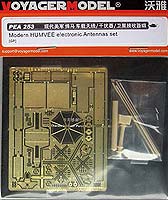Das Set enthält vorneweg das Rhino Anti-IED-Device. Ein Störsender der an der Front angebracht wird und nach vorne umgeklappt und ausgezogen den Bereich vor dem Fahrzeug elektronisch stört. Das Rhino wird aus Ätzteilen gebogen und ist voll beweglich, wenn mans hinkriegt. Am Heck anzubauen sind eine Duke-Antenne aus Resin und zwei Antennen, deren Bezeichnung ich nicht kenne, aber man kann ja auch nicht Alles wissen. Die exellent aus Metall gedrehten Teilen sind das eigentliche Highlight des Sets! Zusammen mit den Metallfedern am unteren Ende sind sie fast zu schade zum lackieren. Als weiteres Schmankerl gibt es noch eine Satellitenantenne mit dazugehörigem „Funkgerät“. Super! Durch die übersichtliche Anzahl der Teile ist das Set durchaus auch für den Resin- und Metalleinsteiger geeignet. Jetzt noch die neue O-GPK mit „Dach“ und den SPARK Minenroller dazu und der Irak-HMMWV ist perfekt!