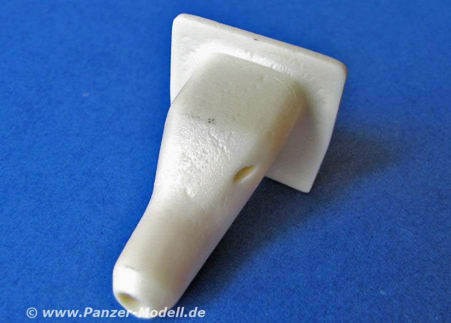 Das Rohr ist qualitativ wieder sehr gut und natürlich mit Feldern und Zügen im Inneren. Die Mündungsbremse ist sehr detailiert und mehrteilig. Die Saukopfblende ist aus Resin gegossen mit sehr gut dargestellter Gussstruktur.