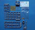 Kommen wir zum Inhalt - 6 Spritzlinge mit feinen Spritzgussteilen, die Unterwanne, der Turm, die Kommandantenluke, PE Teile, Federn, Metallteile und einen Decalbogen.