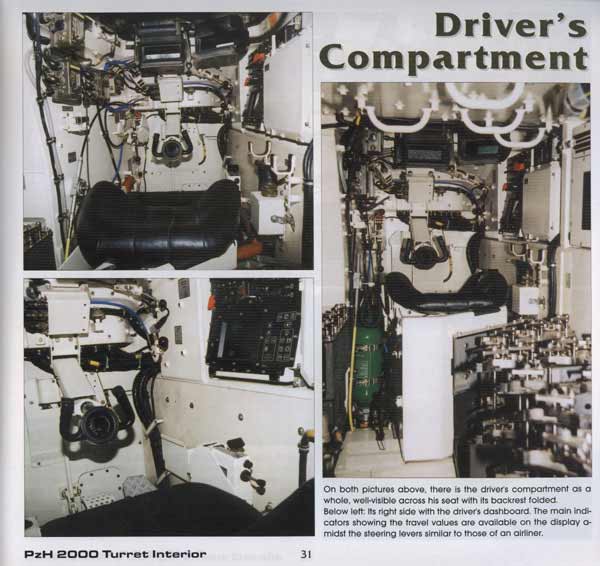 Auf den restlichen 37 Seiten werden dann nach und nach alle Details der PzH2000 in qualitativ guten Detailfotos gezeigt. Angefangen mit Wannenfotos, die mit Schemazeichnungen ergänzt werden, zu Details des Turms bis zu einem großen Schwung an Innenaufnahmen von Ladesystem, Munitionskammer, Arbeitsplätze, Verschluss, usw. Auch hier gibt es keinen Winkel, der ausgelassen wurde.